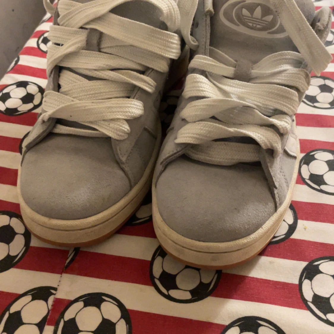 Snygga ljusblå campus från Adidas med klassiska vita ränder och snörning. Perfekta för en avslappnad stil.