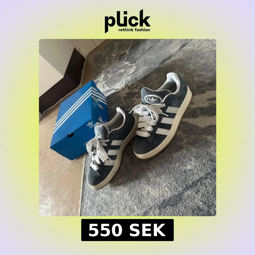 Snygga Adidas Campus sneakers med vita ränder och snörning. Perfekta för en avslappnad stil. Skorna har en klassisk design med en bekväm passform.
