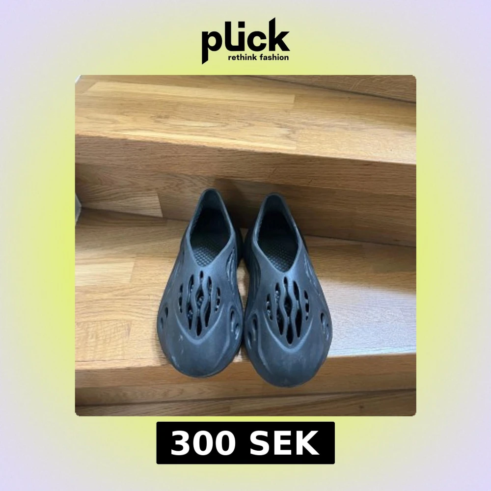 Svarta Yeezy Foam Runner som jag säljer eftersom de ej kommer till användning. De är använda max 10 gånger och anledningen till att de ser lite smutsiga ut är eftersom de stått väldigt länge och har inte fått för mig o tvätta de. Ingen box följer med!