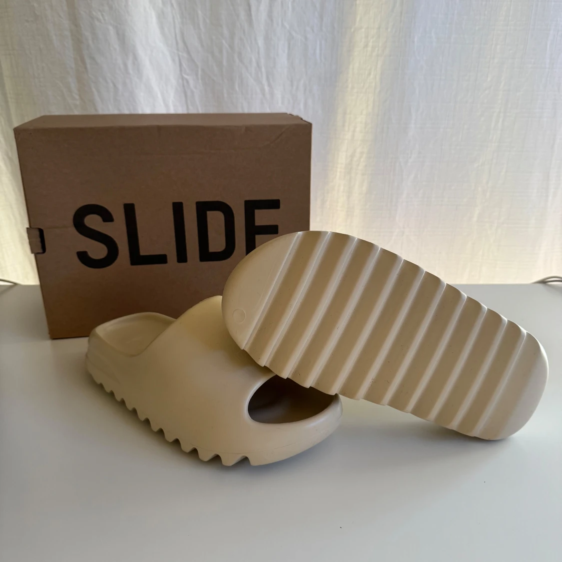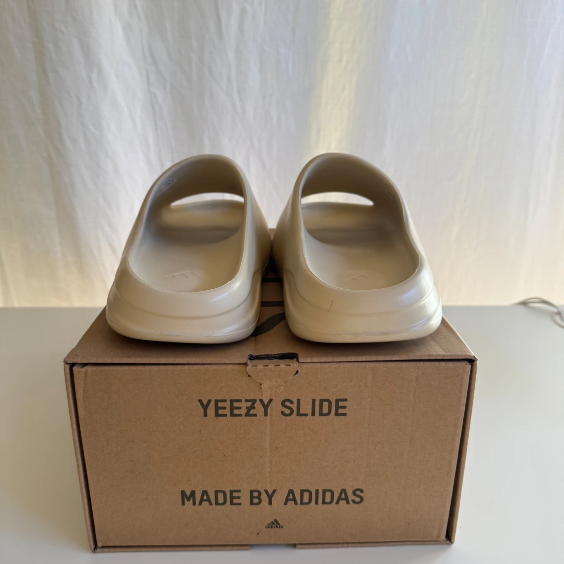 Själjer ett par snygga Yeezy Slides i färgen Bone från Adidas. Perfekta för en bekväm dag på stranden eller hemma med stilren look. Storlek: 42 (US 8)Helt nya med lappen kvar. Priset är diskuterbart. Skriv vid minsta fundering!