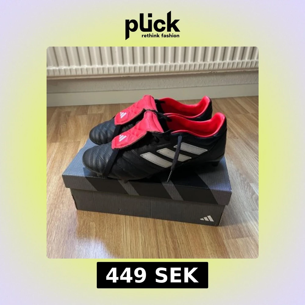 Säljer ett par Adidas Copa Gloro FG fotbollsskor i svart med röda detaljer och silvriga ränder. Klassisk design med snörning och täckande plös. Perfekta för spel på gräsplan. Snygg kontrast mellan svart och rött, samt bekväm passform. Endast använd ett fåtal gånger på fotbollsplanen ⭐️ storlek 42 🔥🔥
