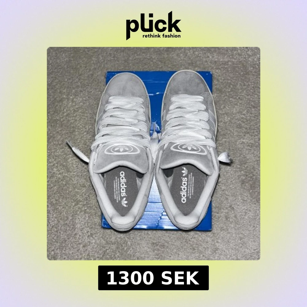 Snygga grå Adidas sneakers i mocka med vita detaljer och snörning. De har en klassisk design med tre ränder på sidan och en gummisula i brunt. Perfekta för en avslappnad stil. De är sprayade med skyddspray vilket hjälper mot snö, regn och smuts. Helt äkta!!!