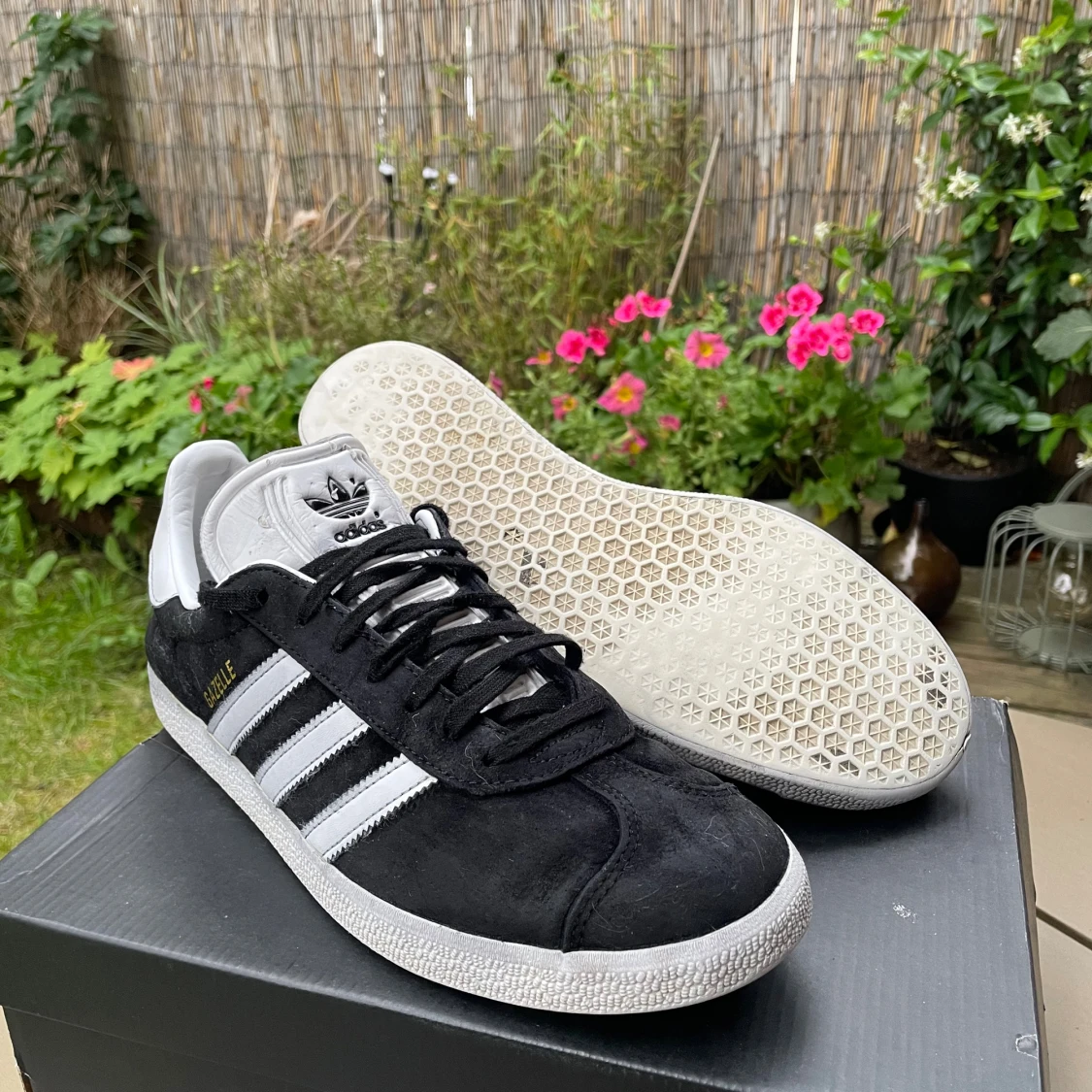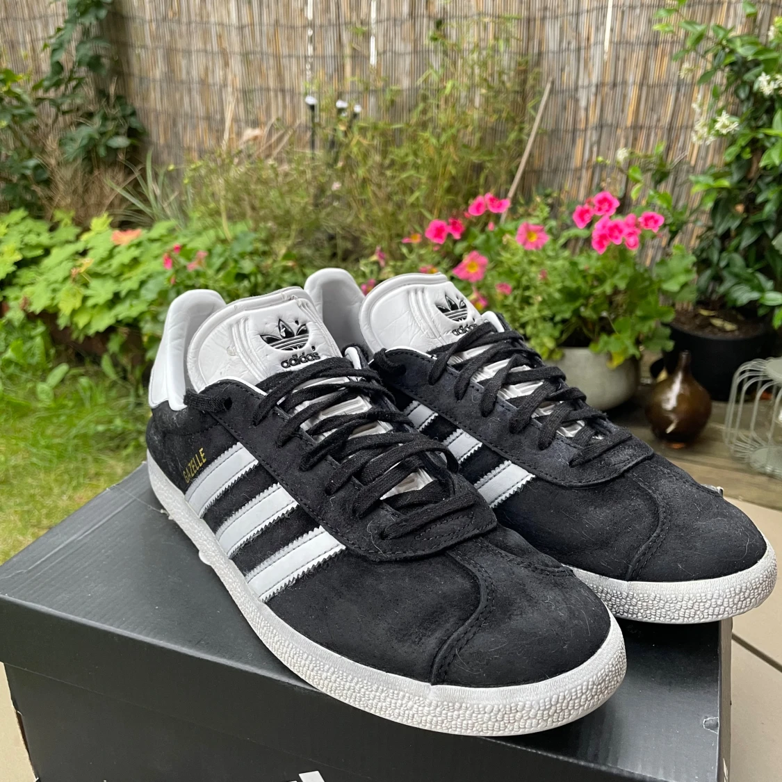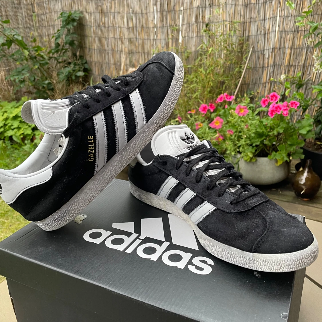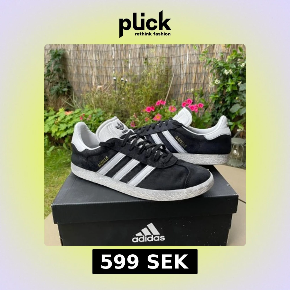 Hej! Säljer ett par svarta Adidas Gazelle i strl 43 1/3… använda ett fåtal gånger och är därför i ett bra skick! Perfekt att få in lite mörka förser nu till höst/vinter! Nypris-1300kr! Pris går att diskutera!