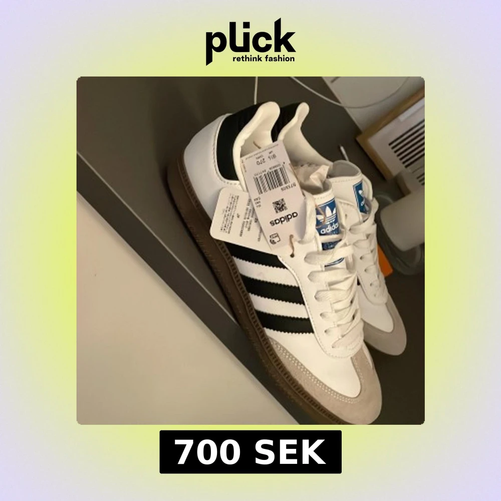 Säljer mina adidas samba skor i storlek 44, endast prövade ej andvända, köpte dom i jd sports i Spanien, då fötterna sväller upp vid värme så passade dom bra men blev för stora i Sverige, det ingår även svarta skosnören
