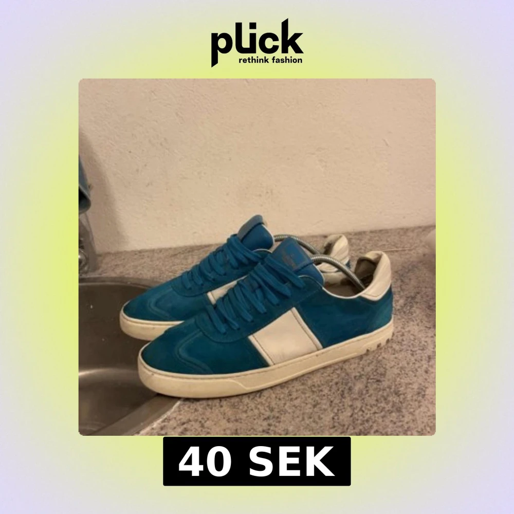 Säljer ett par blå sneakers från Adidas med vita detaljer och vit sula. Skorna har klassisk snörning och är tillverkade i mocka och syntet. Perfekta för dig som gillar en sportig och stilren look.