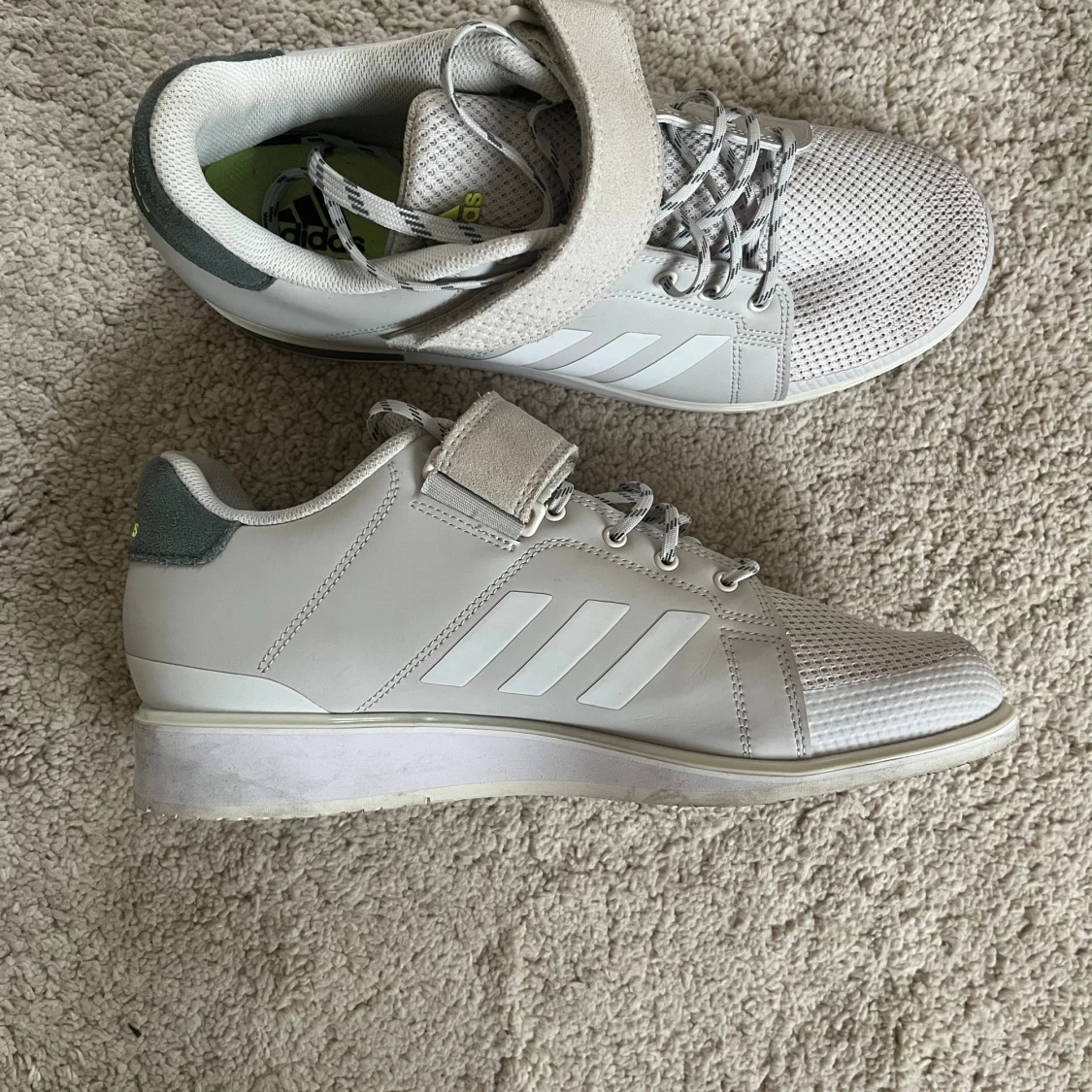 Adidas powerperfect 3 i storlek 44 2/3,(UK 10) sparsamt använda och i bra skick. Stabila och perfekta för styrkelyft, knäböj och olympiska lyft.