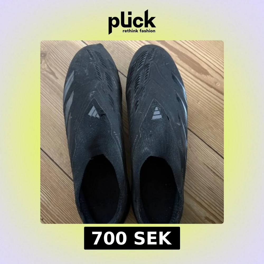 Säljer ett par svarta fotbollsskor från Adidas med en strömlinjeformad design och dobbar för bra grepp på planen. Fick dubbar på den strumpan men de stör inget faktiskt.Lite söndriga där fram går o diskutera pris.