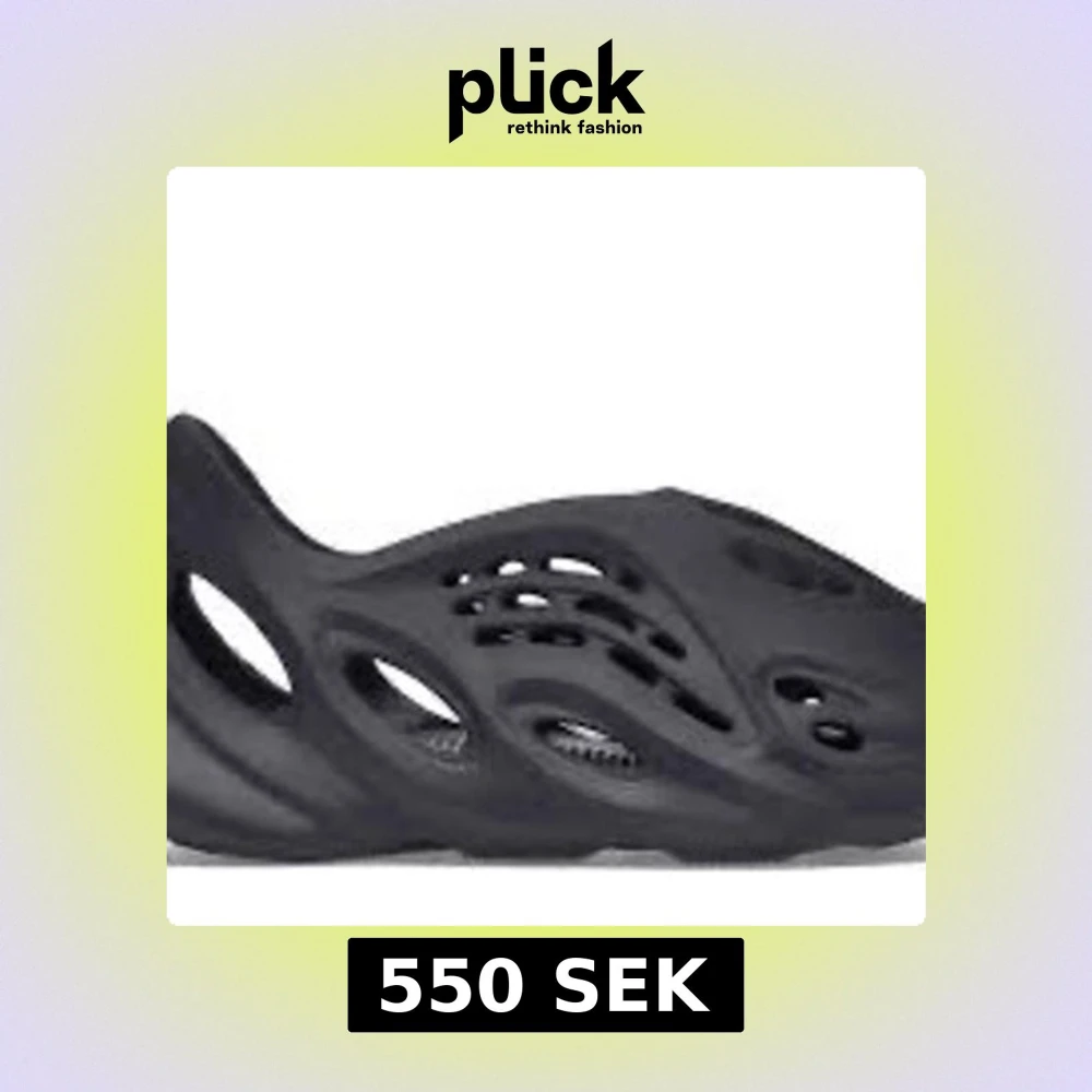 Säljer ett par Adidas Yeezy Foam Runner i svart. Skorna har en futuristisk design med många hål och är tillverkade i lätt syntetmaterial. Perfekta för dig som vill sticka ut med en unik och bekväm look. Kommer med originalkartong.