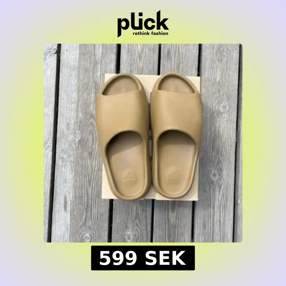 Säljer ett par Adidas Yeezy Slide i beige färg. Slidesen har en minimalistisk design med öppen tå och platt sula, tillverkade i syntetmaterial för maximal komfort. Perfekt för chill dagar och enkel att glida i. Box medföljer.