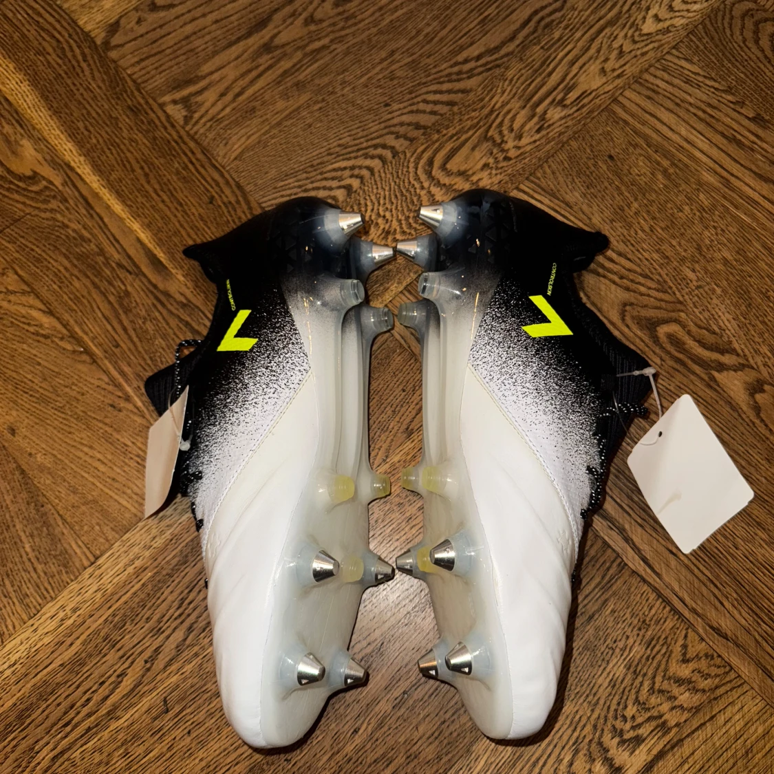 Otroligt fina Adidas Ace 17.1 i mjukt känguruskinn, och SG-dobbar – perfekt för tekniska spelare och våta gräsplaner. Säljs inte längre i butik, men väldigt populära. 👟 Skick: Oanvända 💰 Nypris: 2599 kr 📏 Storlek: 42 2/3 📦 Endast skorna som medföljer, men skickas såklart i en kartong.
