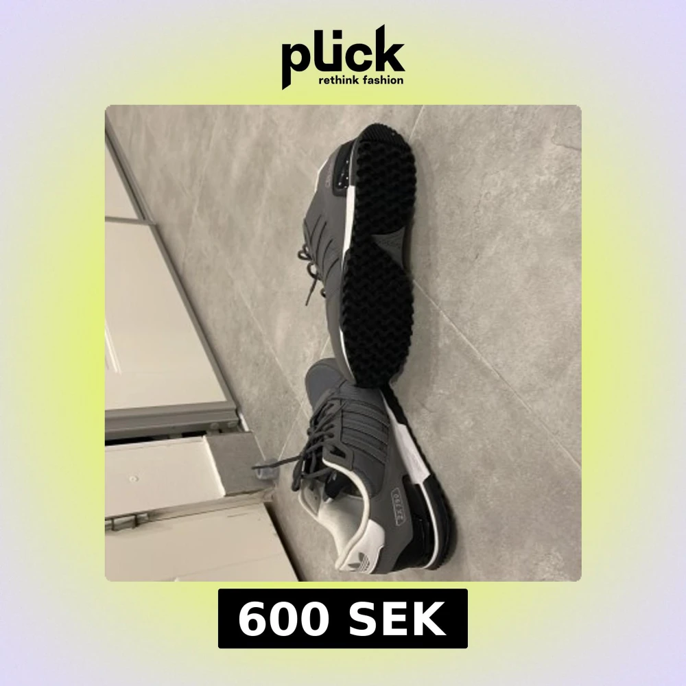 Snygga grå sneakers från Adidas med klassiska tre ränder på sidan. Skorna har en vit sula och svart yttersula med bra grepp. De har snörning och en bekväm vadderad insida. Perfekta för en stilren look. Även bara använd i 1 tillfälligt