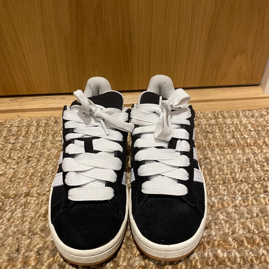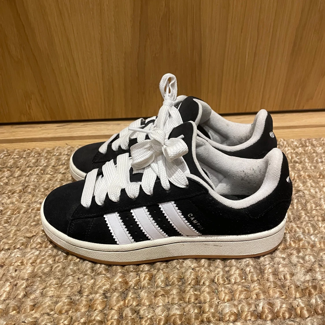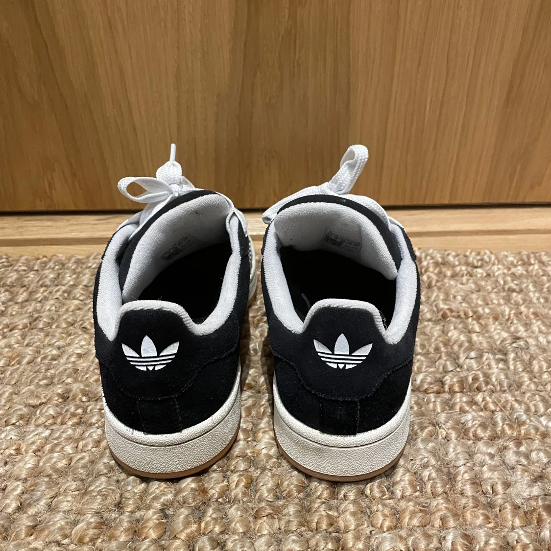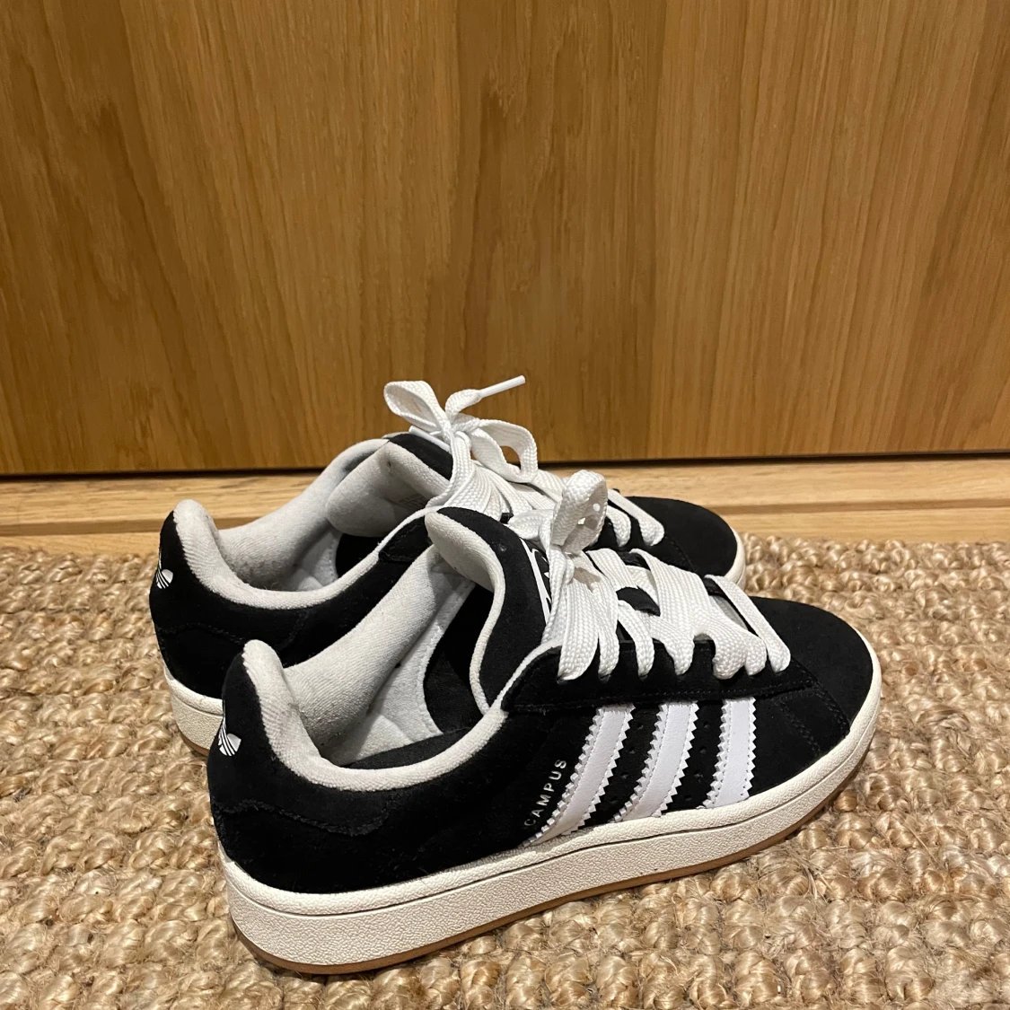 Svarta Adidas Campus sneakers i mocka, i väldigt fint skick då dom knappt är använda