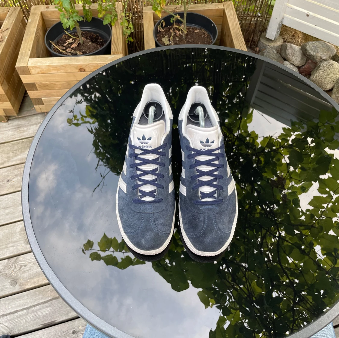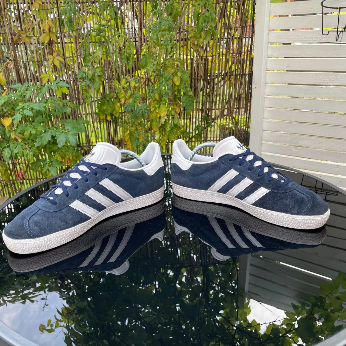 Mörkblå adidas gazelle skor i mycket bra skick, inga skador eller defekter. Perfekta skor till hösten. Hör av er vid frågor eller funderingar!! (Strl 38,5 men passar mer som 39-40)