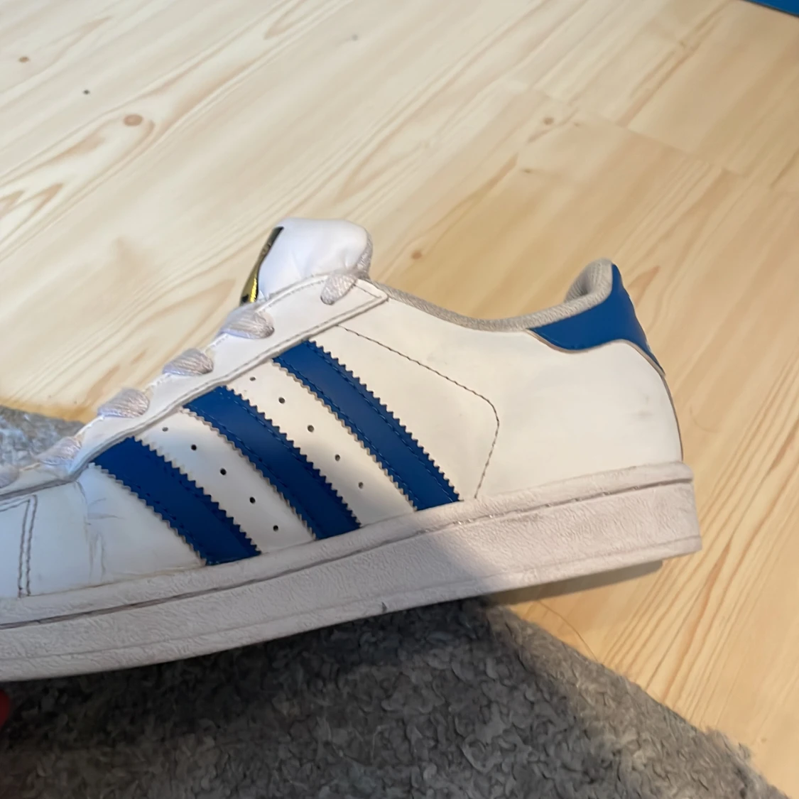Blåvita superstars som jag köpte för ca en månaden i London storlek 36,5 men hyfsat stora i storleken. Men jätte jättebra skick iaf