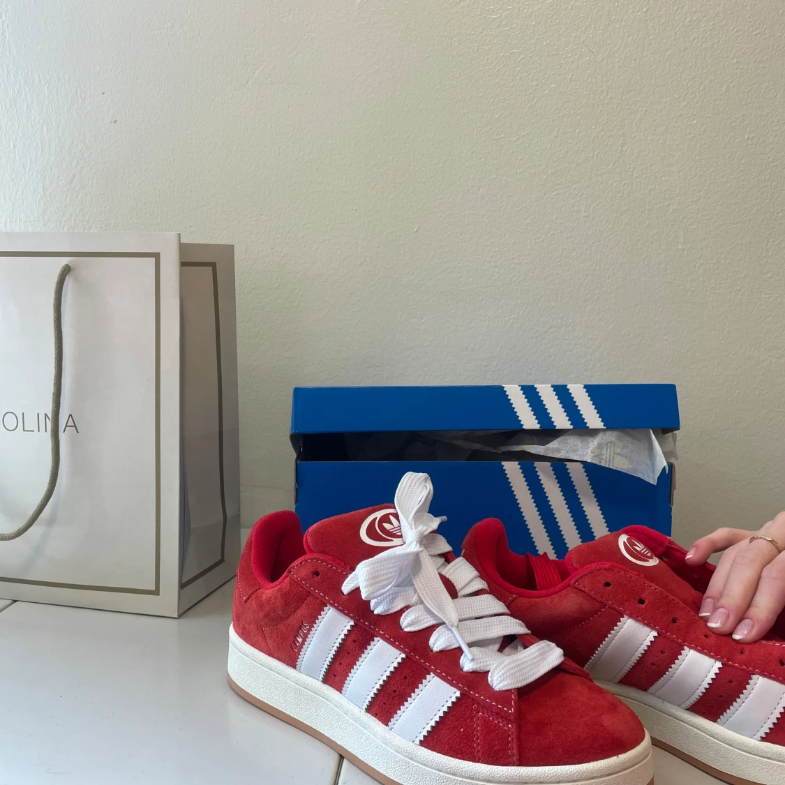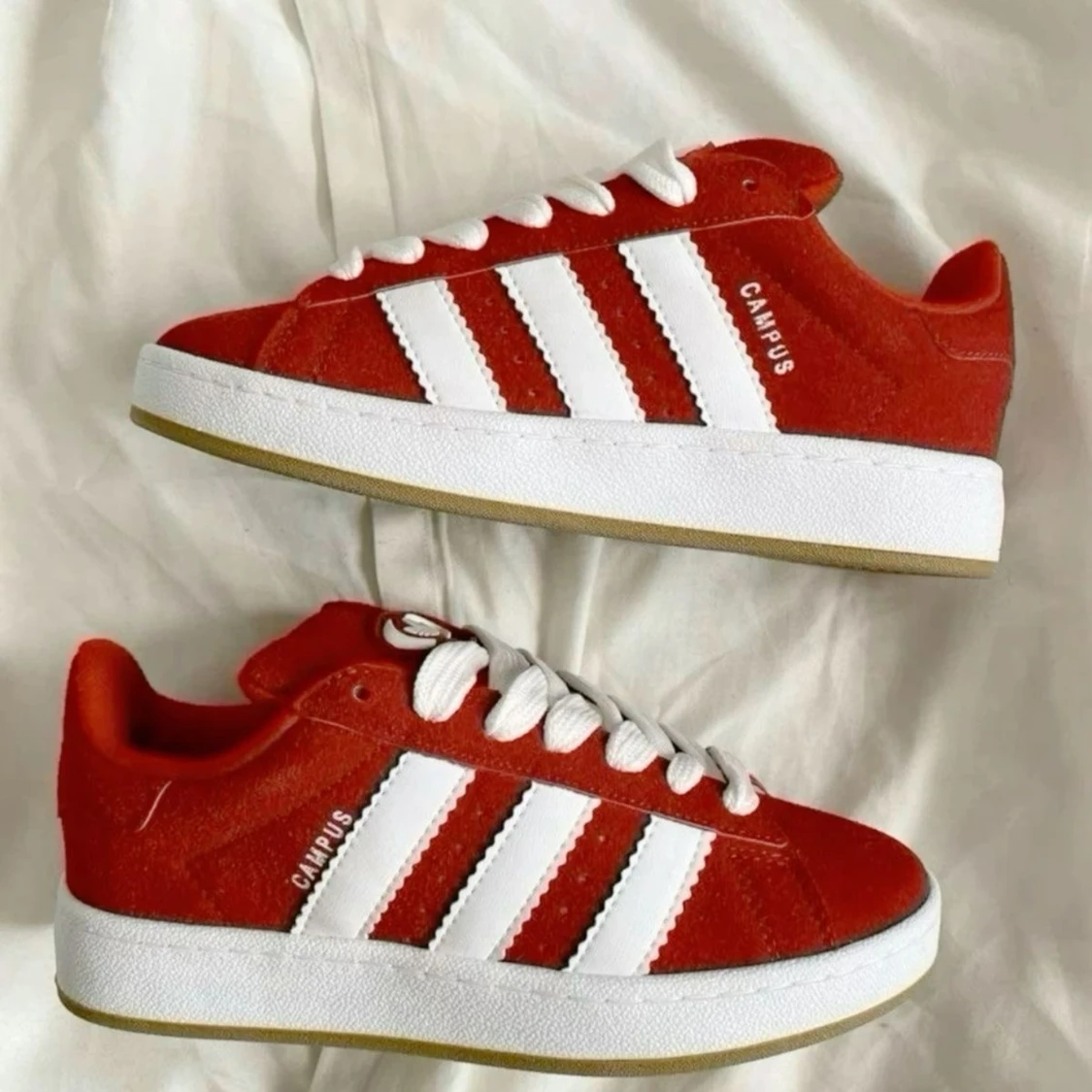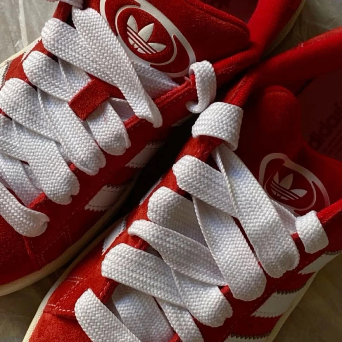 Säljer nu mina campus då dem ej kommer till användning, bud accepteras vid bra deal🌶️ Storlek 40 Använda Max 5 gånger och har inga skador eller skavanker - tvättas såklart innan leverans! Tillkommer orginalkartong, kvitton, extra skosnören i röd färg!