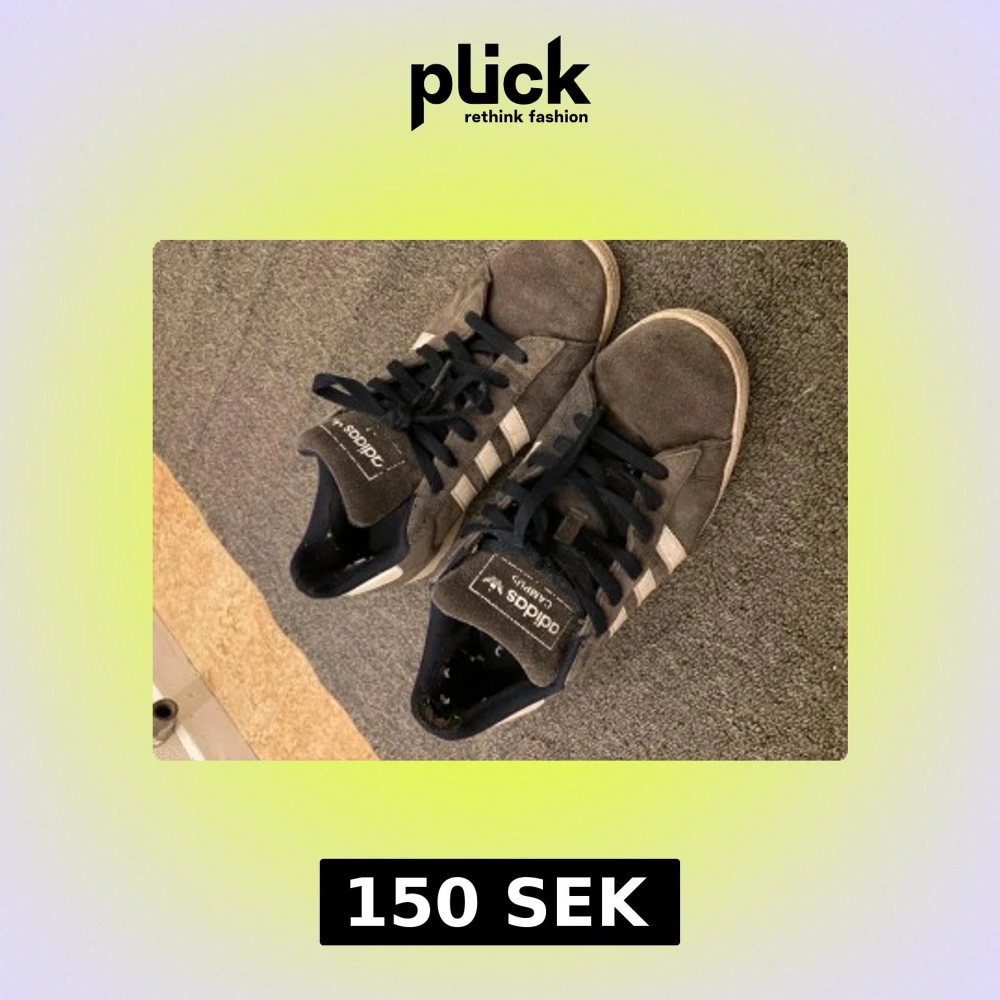 Säljer ett par klassiska Adidas Campus 00 sneakers med vita detaljer och de ikoniska tre ränderna på sidorna. Skorna har svart snörning, vit hälkappa med Adidas-logga och platt sula. Perfekta för en streetwear-look.