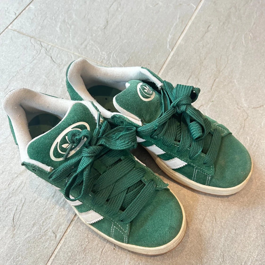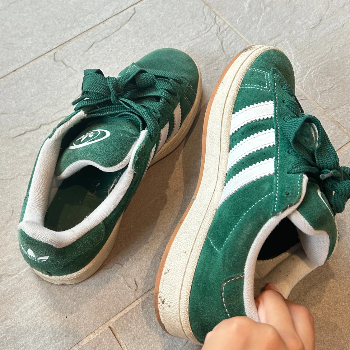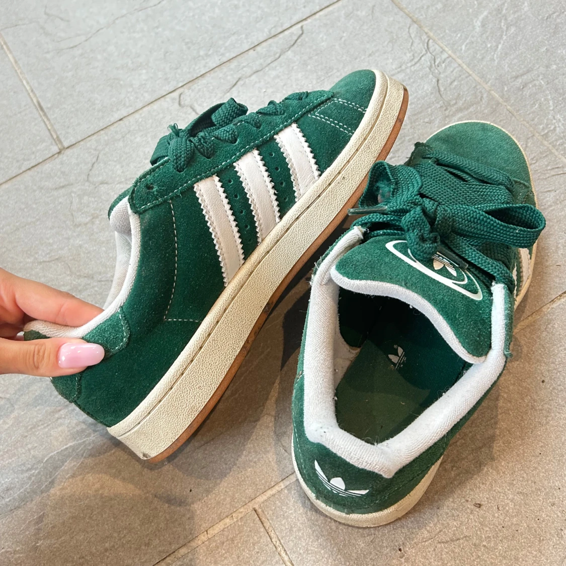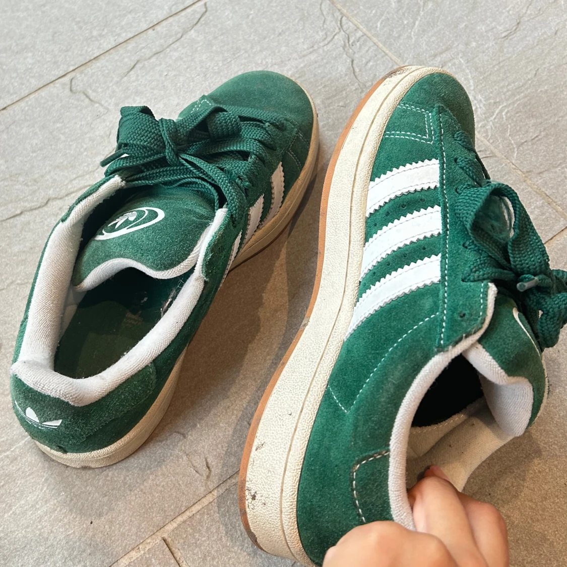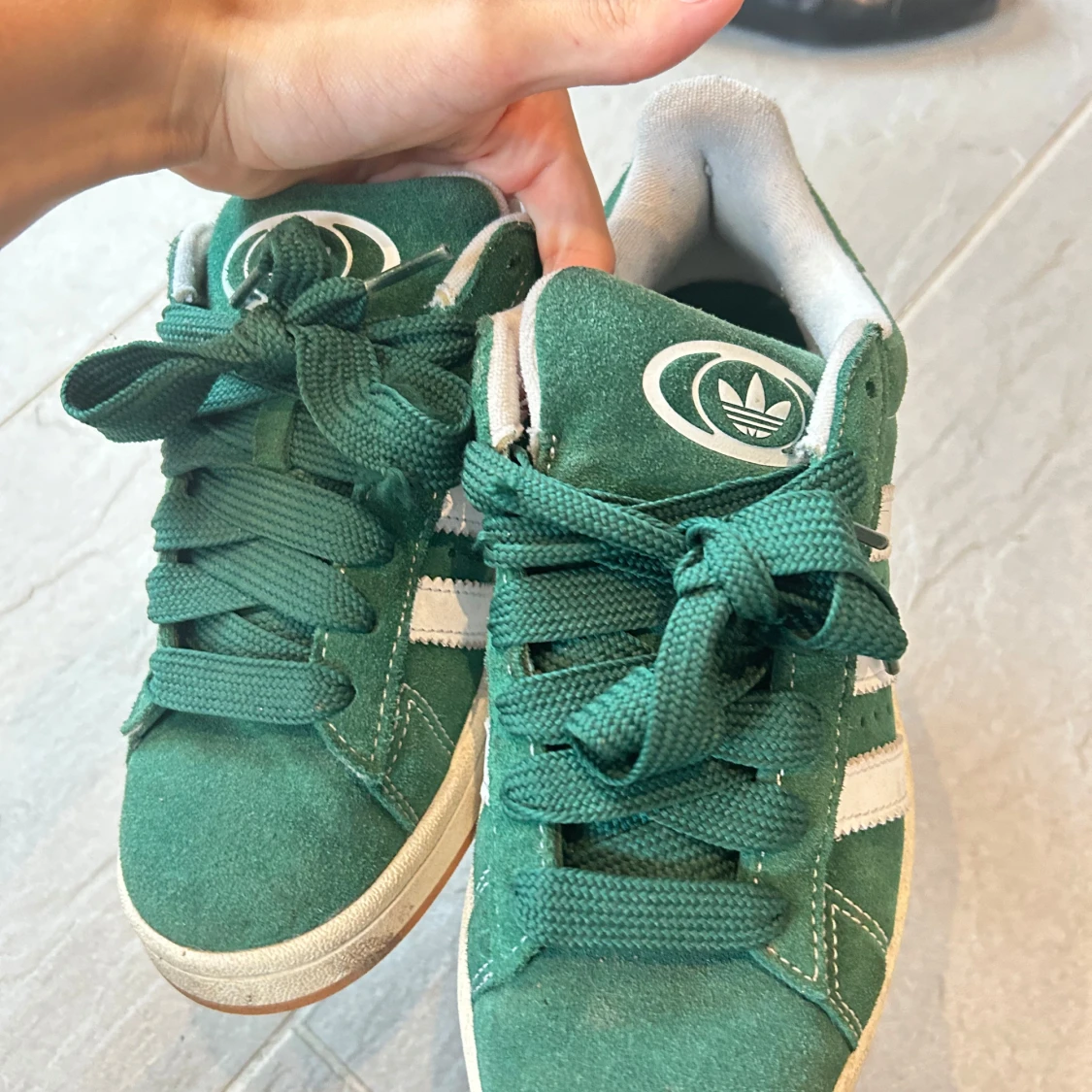 Fina adidas campus som är lite smutsiga men allt går att tvätta bort men de är jag alldeles för lat för😅😅😅 Inga som helst tecken på användning (förutom lite smutsiga) förutom att ena snöret har gått sönder på ena skon.💚💚💚