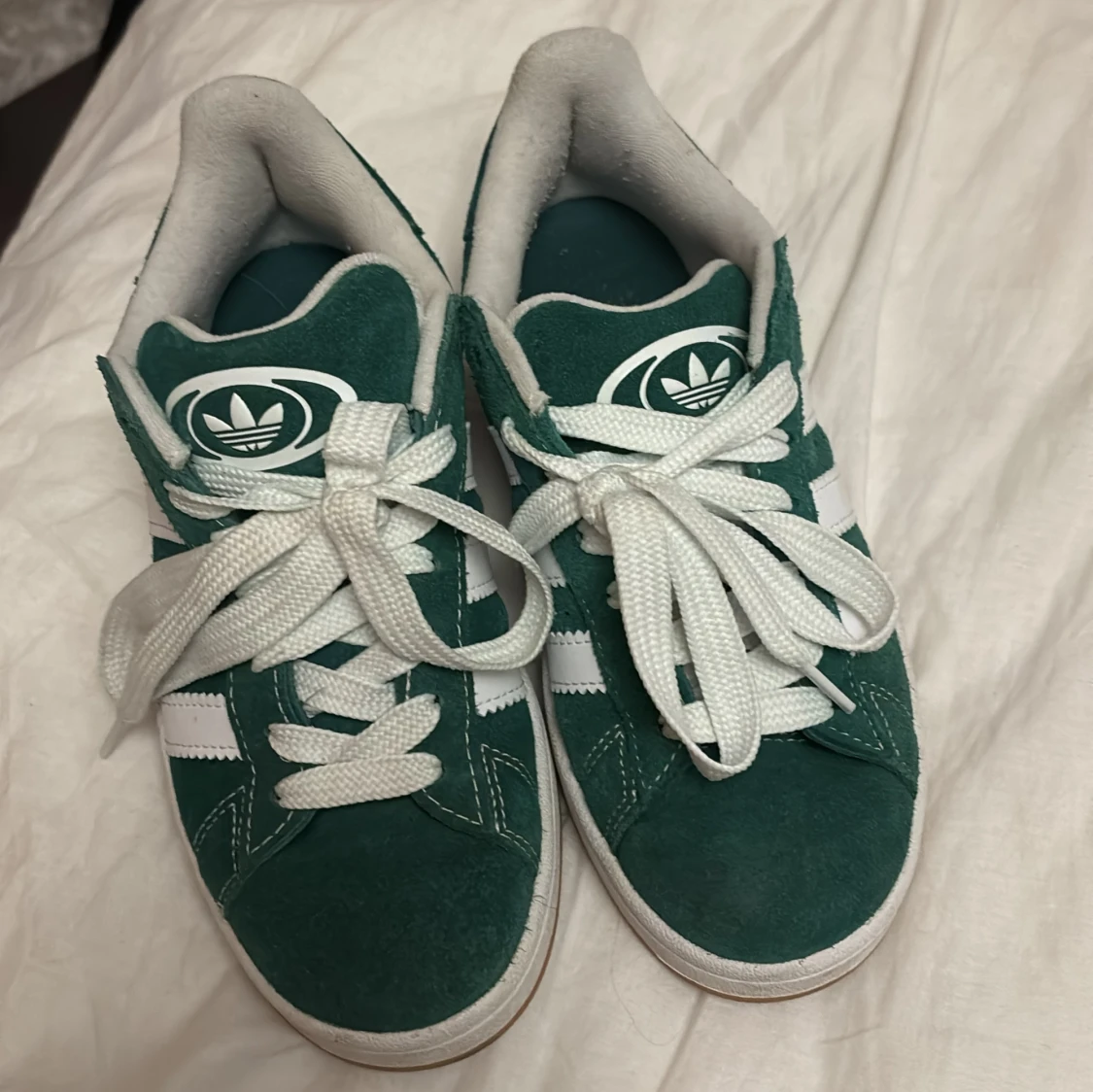 Intressekoll på mina gröna adidas campus, använda ett fåtal gånger 💚 superfina i bra skick, köpt för 1300✨