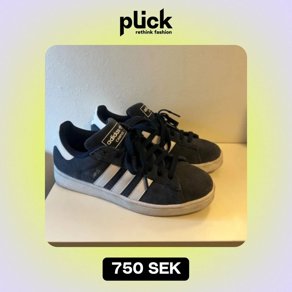 Säljer mina fina mörkblå adidas campus💙 använda några få gånger och i väldigt fint skick! Säljer då dom tyvärr är lite för stora för mig. Kartong medföljer📦