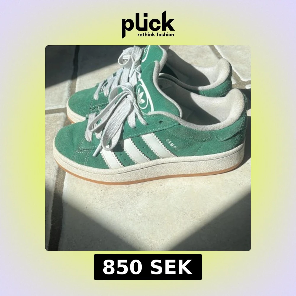 Gröna Adidas Campus sneakers, fint skick. Storlek 36 2/3. Får även med gröna skosnören