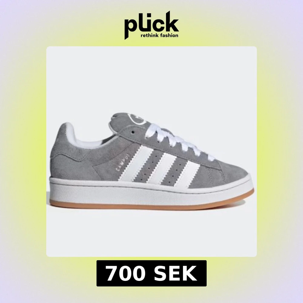 Snygga grå Adidas Campus sneakers i mocka med vita detaljer och klassiska tre ränder på sidan. Skorna har en vit sula med en gummifärgad undersida och snörning framtill. Perfekta för en stilren och avslappnad look.