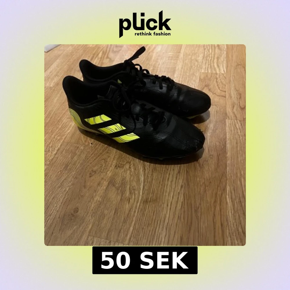 Snygga svarta Adidas Copa fotbollsskor med neongula detaljer och snörning. Svart läder. Skick 6/10. Skriv vid intresse 📩✨