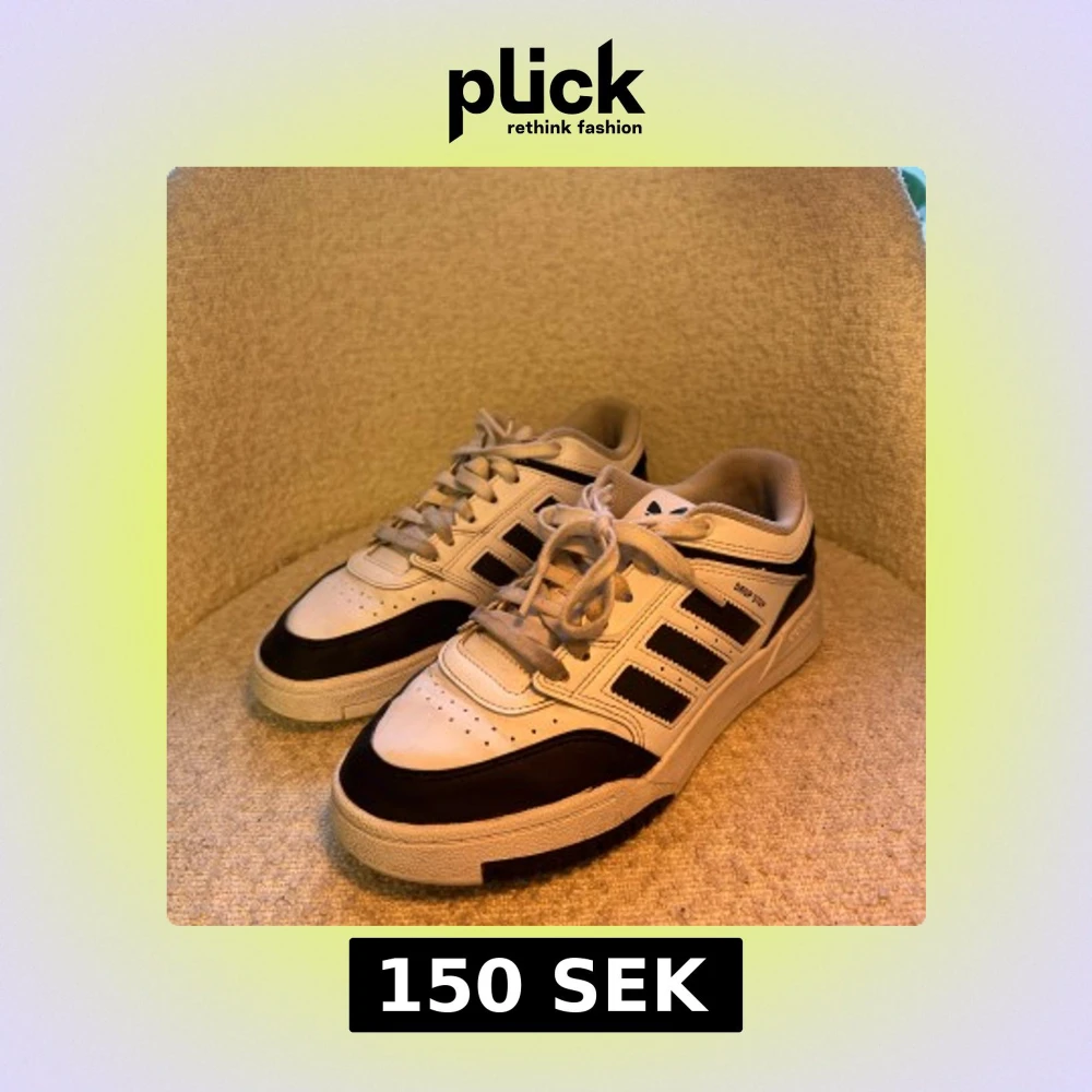 Säljer ett par Adidas Drop Step sneakers i storlek 38. Skorna är vita med svarta detaljer och har klassiska tre ränder på sidan. Låg modell med snörning och rund tå. Ovandel i syntet och skinn, med Adidas-logga på hälen och platt sula för skön komfort.
