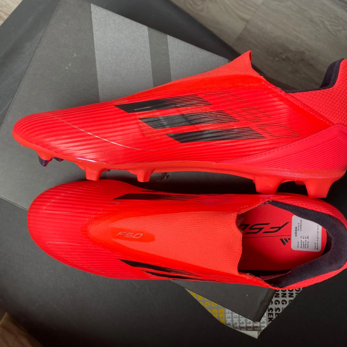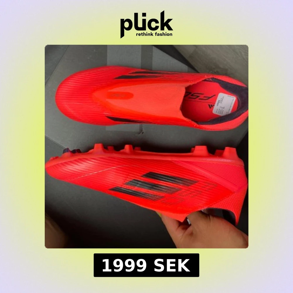 Tja säljer dessa helt nya Adidas f50 lacless, ett par helt nya skor skick 10/10 Inge defekter alls aldrig använda. Skorna är i grösdobbar! Box och allt papper är kvar! Pris kan diskuteras, Tveka inte på att lägga bud!!!! !
