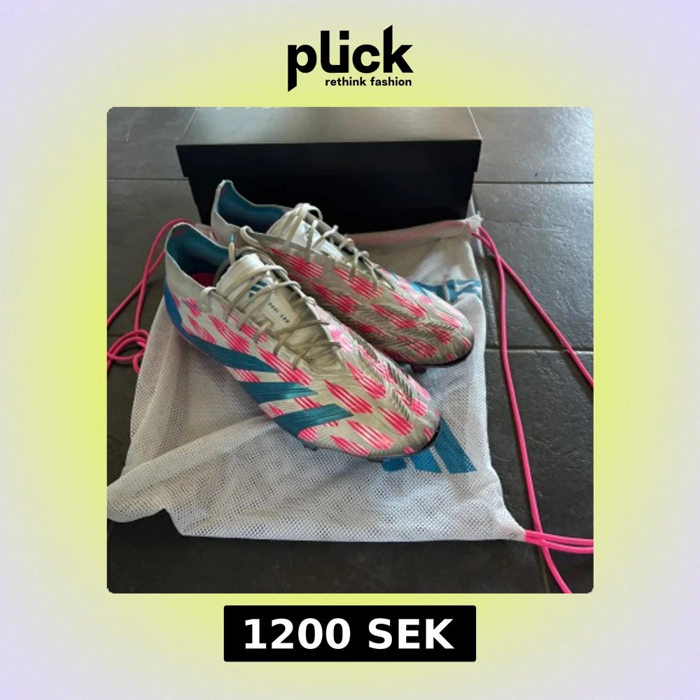 Säljer ett par Adidas fotbollsskor i vitt med blå undersula skorna är lite söndriga vid tårna på båda skorna men perfekt om du är en mittback/målvakt Skriv i till mig för fler bilder. Skorna är i storlek 47. Pris går och diskutera.😀