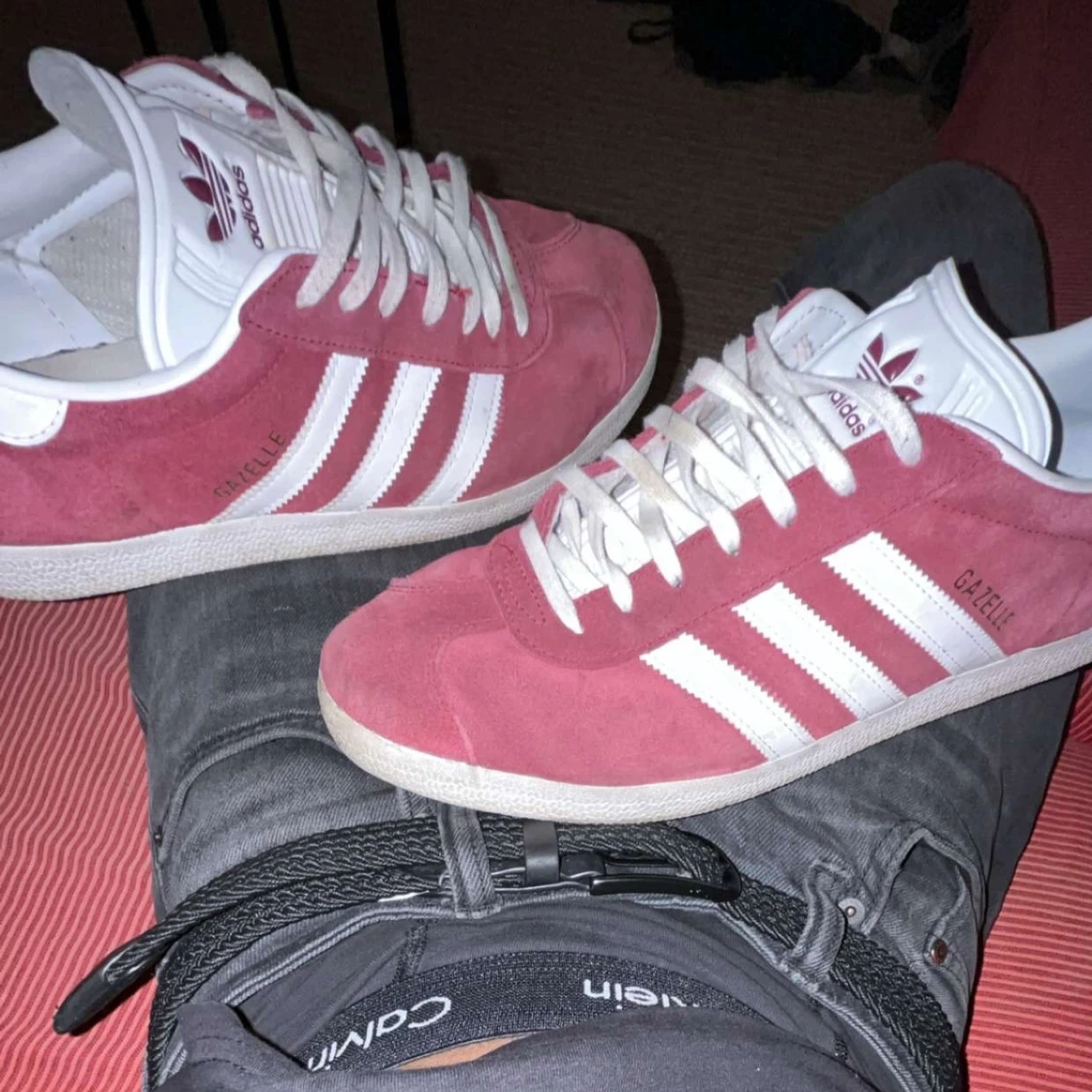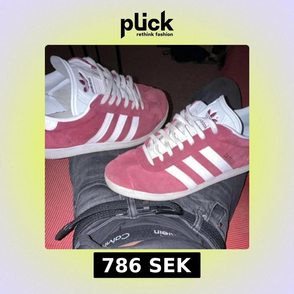 HELST I GÖTEBORG ELLER I NÄRHETEN DÅ JAG KAN MÖTAS UPP Säljer ett par Adidas Gazelle sneakers i snyggt rosa mocka med klassiska vita ränder och vit sula. Skorna har rund tå, platt sula och vita snören. Perfekta för dig som vill ha en ikonisk och stilren sneaker med retrovibbar. 2 månader gamla då jag redan tröttnat på de
