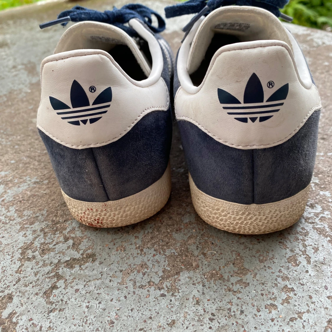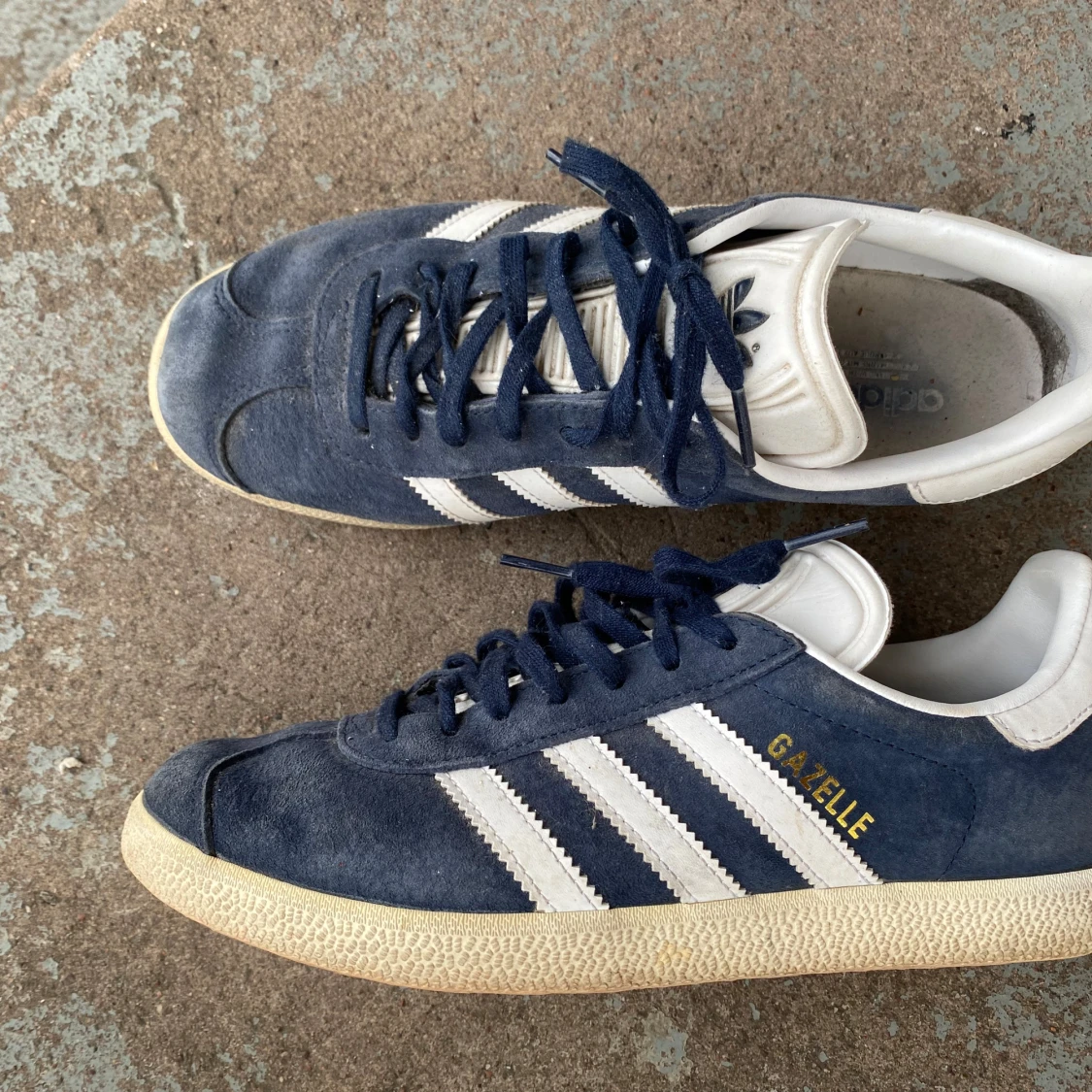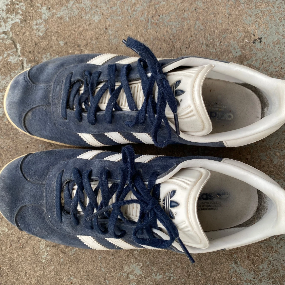 Adidas Gazelle skor, mörkblå. Köptes år 2018. Används några gånger. Väldigt dammiga efter att ha stått i skohyllan i flera år. Storlek 38 dam.
