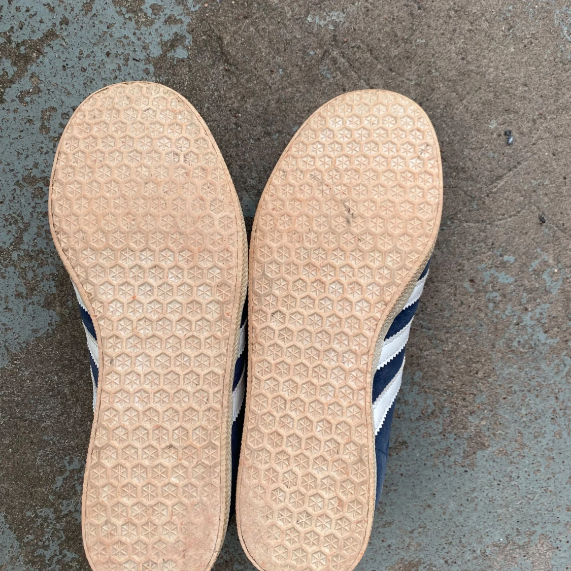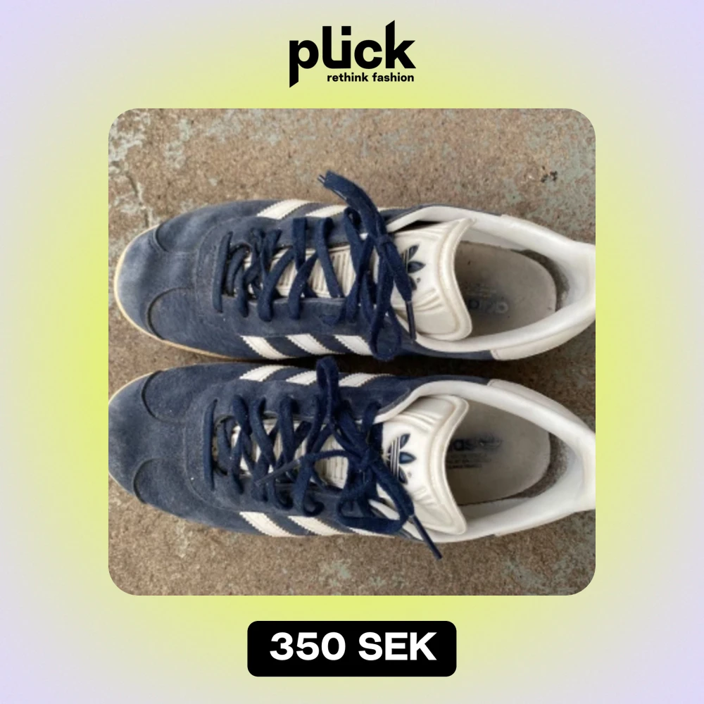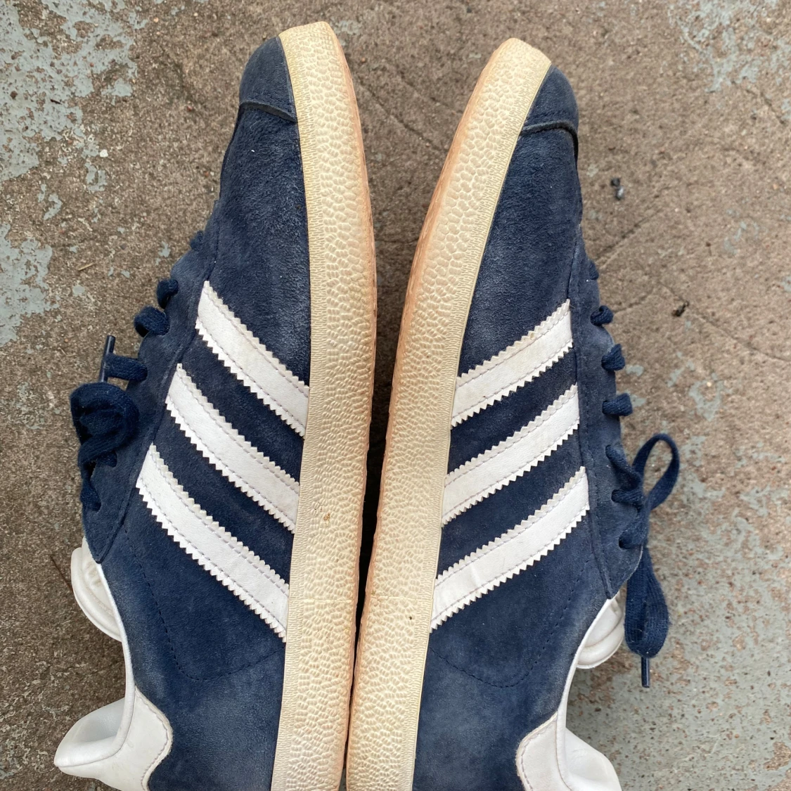Adidas Gazelle skor, mörkblå. Köptes år 2018. Används några gånger. Väldigt dammiga efter att ha stått i skohyllan i flera år. Storlek 38 dam.