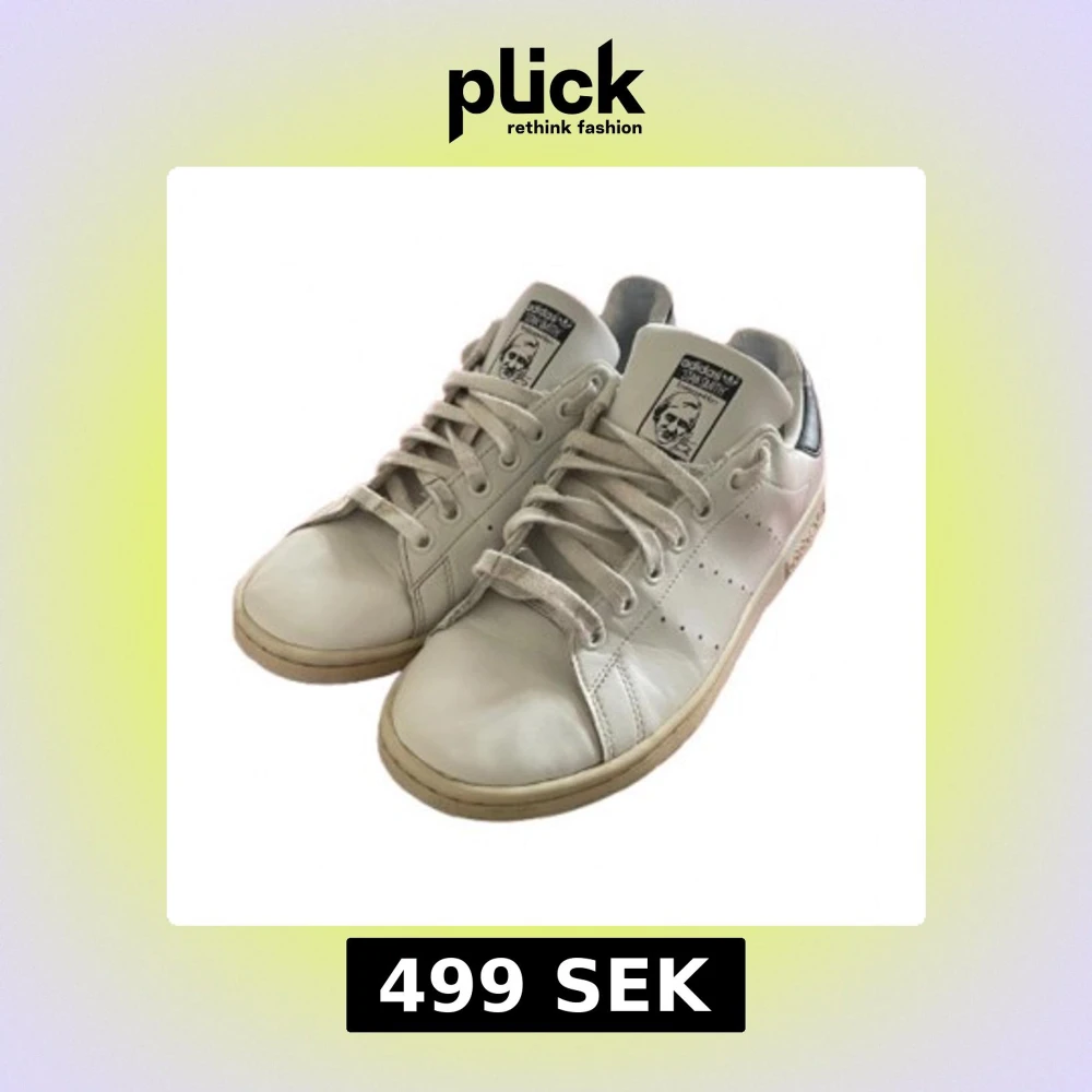 Klassiska vita Adidas Stan Smith sneakers perfekt till våren med snörning och perforerade detaljer på sidorna. Skorna har en ikonisk design med en bild på tungan och en bekväm sula. Perfekta för en stilren och tidlös look. OBS box följer ej med, varan kan vara sliten vid skosnörena men det går självklart att byta om man känner det