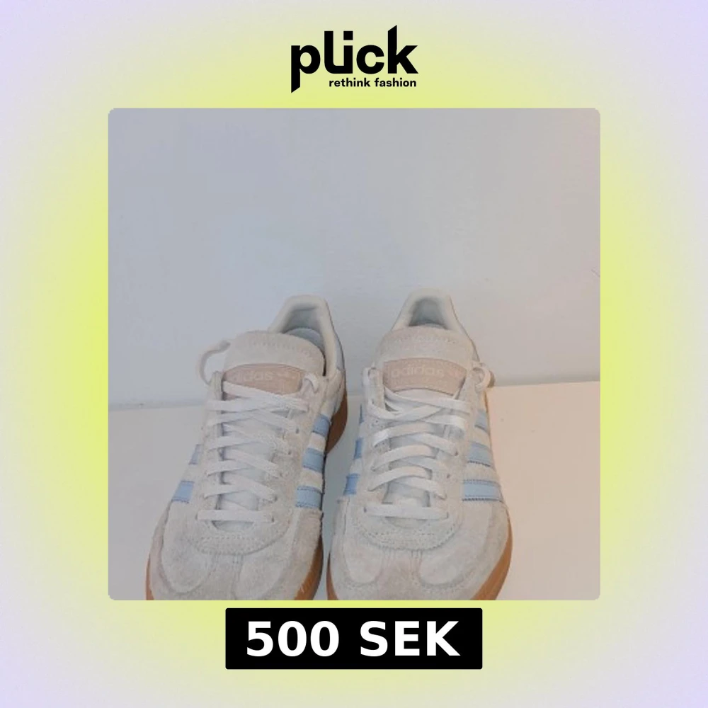 Säljer nu mina Adidas Handball Spezial sneakers i mocka med beige bas, ljusblå ränder och detaljer samt klassisk gummisula. Skorna har snörning och rund tå, perfekt för dig som gillar ett par klassiska skor. Säljer p.g.a att jag växte ur dem lite för fort, bra skick.🤍💙 Nypris: 1300 kr