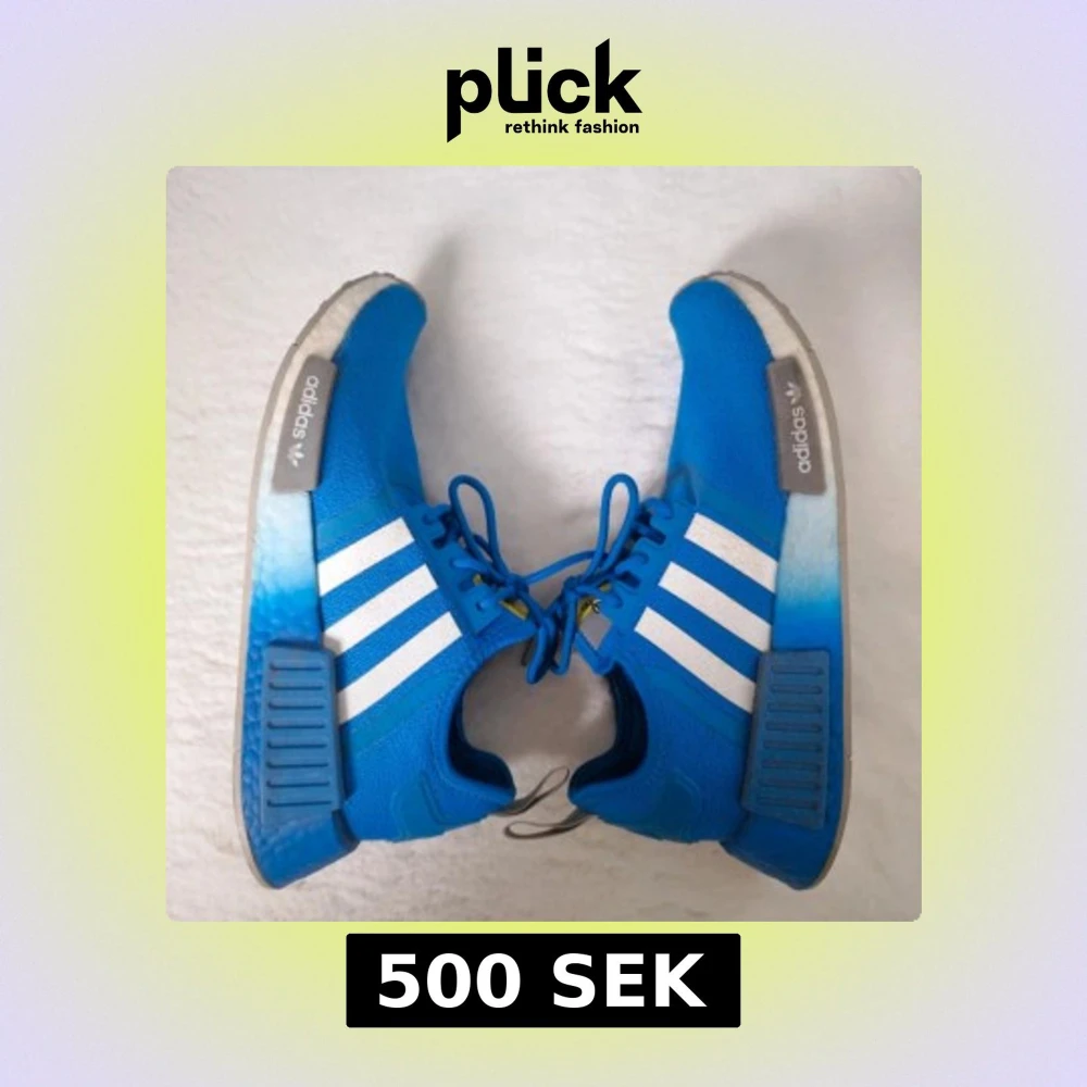 Säljer en sällsynt Adidas NMD R1 'Blue Bird'. Sparsamt använd och är i bra skick! Lite osynliga repor på den blåa detaljer på baksidan. Storlek: 41 1/3 Typ: Unisex