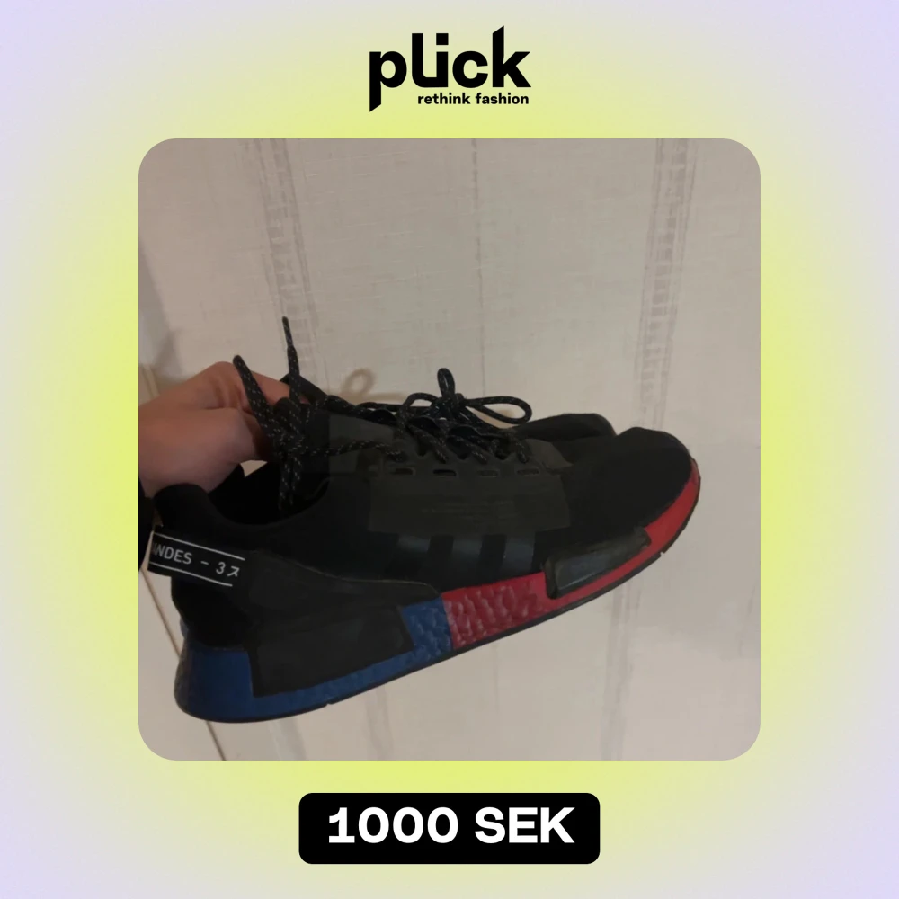 Snygga svarta Adidas sneakers med röda och blå detaljer. Knappast använda (5-10 gånger max), nytt skick och väl bevarade. Pris kan diskuteras!