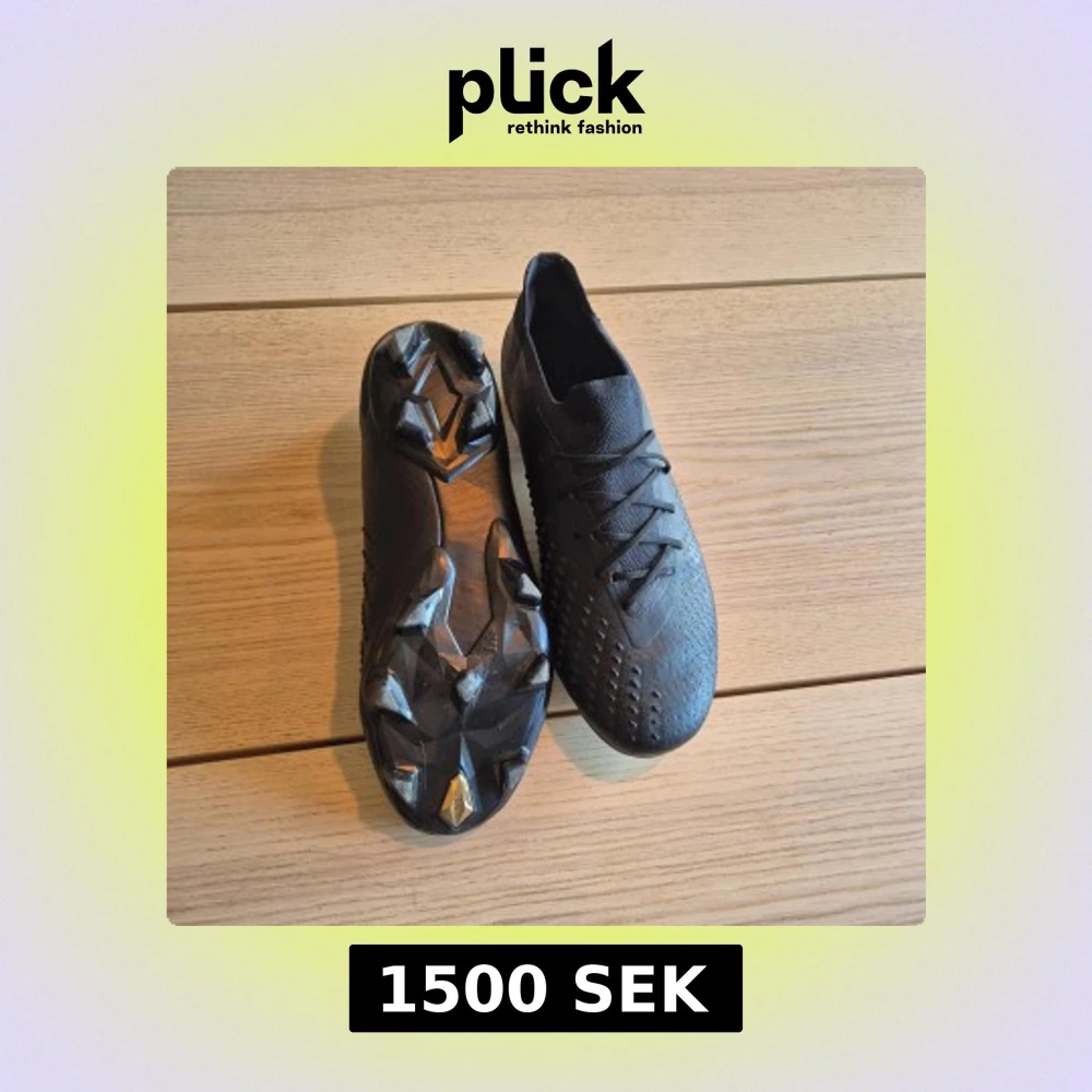 Helsvarta adidas predator med dobbar för spel på konstgräs och naturgräs. Mycket bra skick utan några skador. Använda fåtal gånger, nypris 2700
