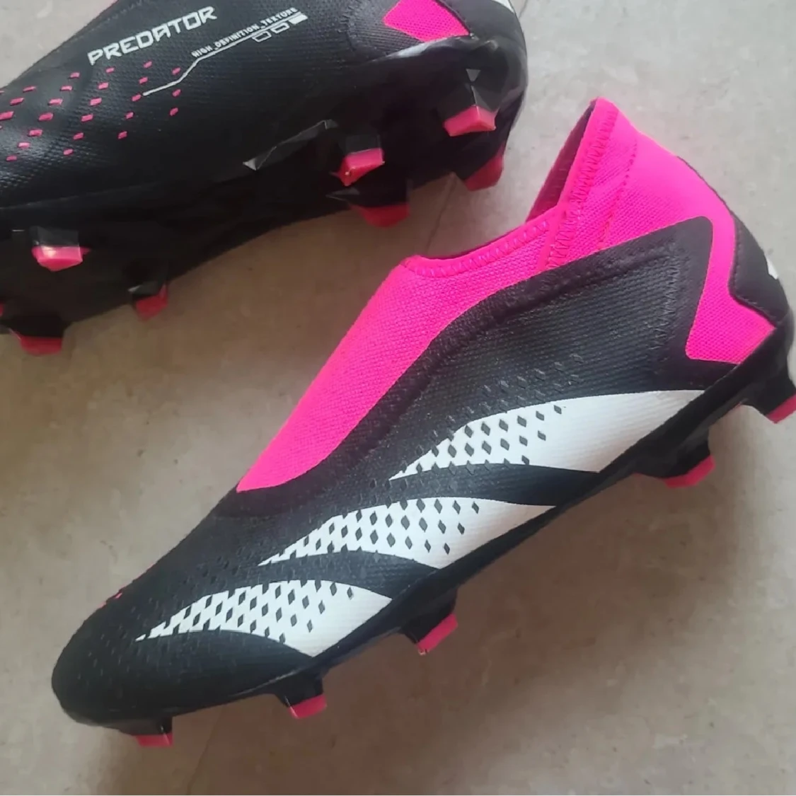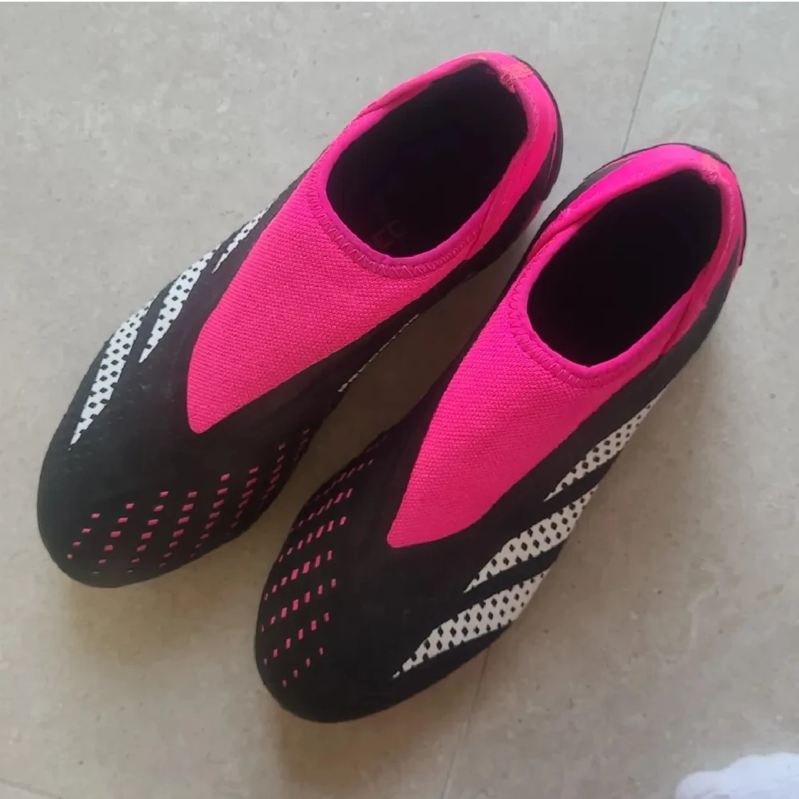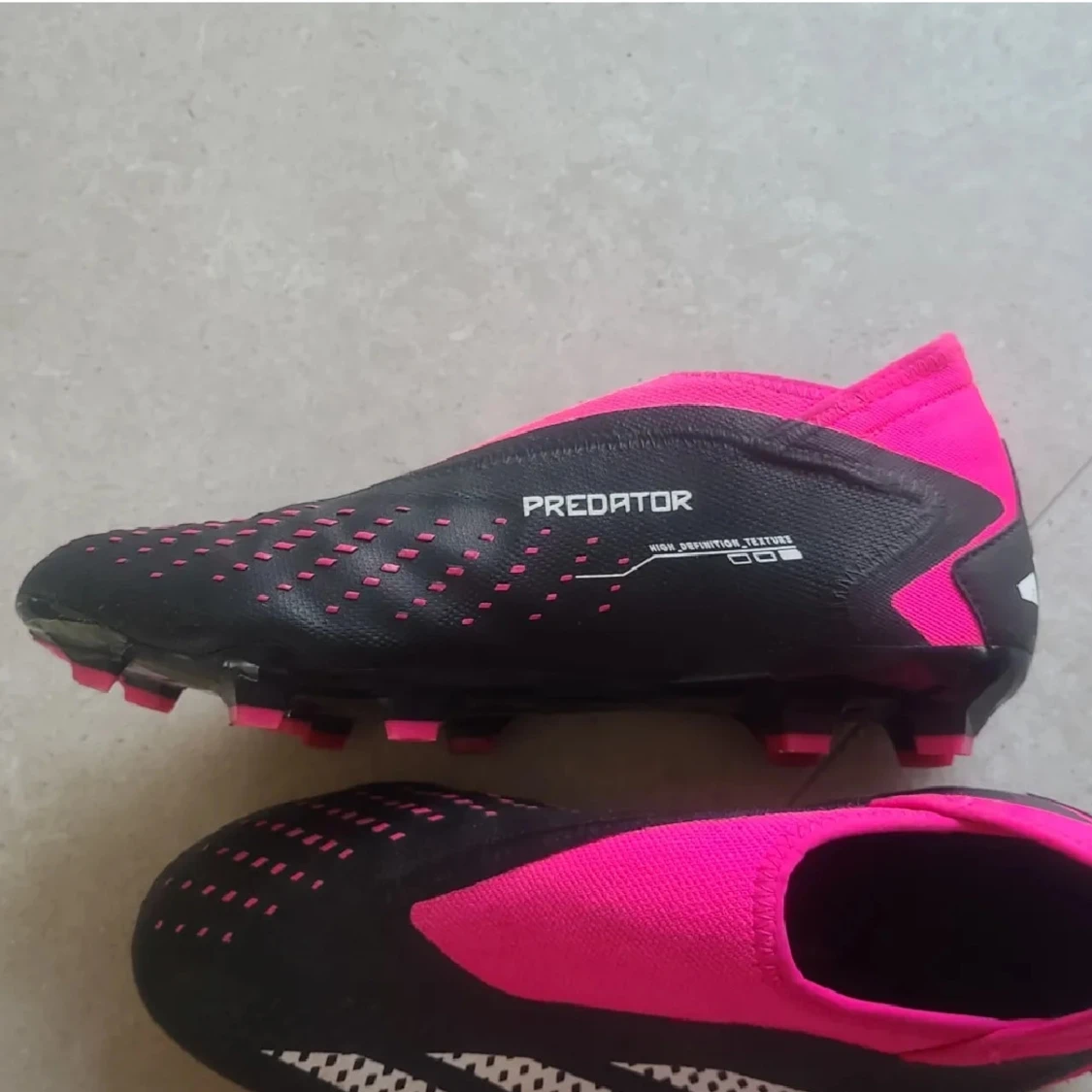 Svarta Adidas Predator fotbollsskor med rosa detaljer, i storlek 43. Använda ett par gånger men fortfarande i bra skick. Nypris 799kr