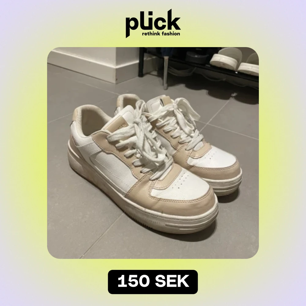 Beige/vita sneakers från Pull&Bear i storlek 39, superfina och bekväma men kommer tyvärr inte till användning Nypris ca 500 kr, säljer för 150