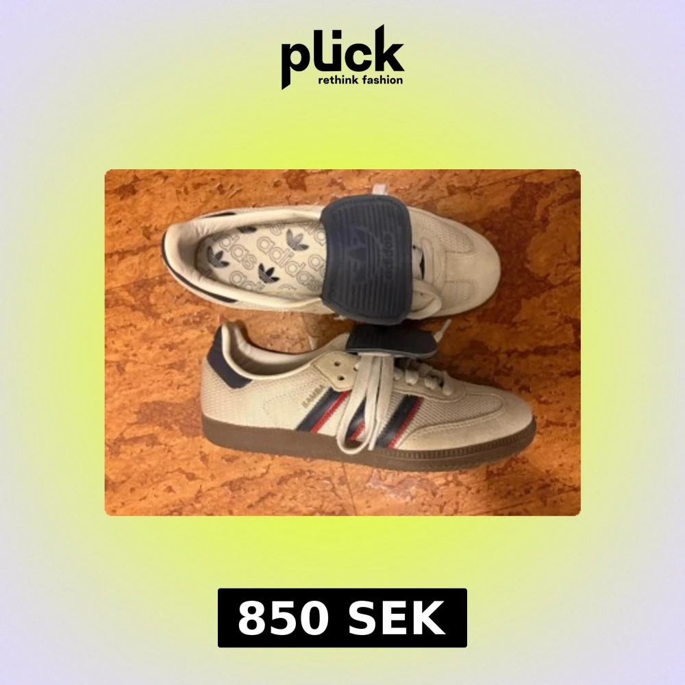 Så fina sambas som tyvärr inte kommer till användning. Knappt använda. Man kan ha tungan infälld eller utfälld. Finns en liten fläck på ena skons framsida, se sista bild. Fläcken syns knappt, speciellt inte med tungan utfälld.