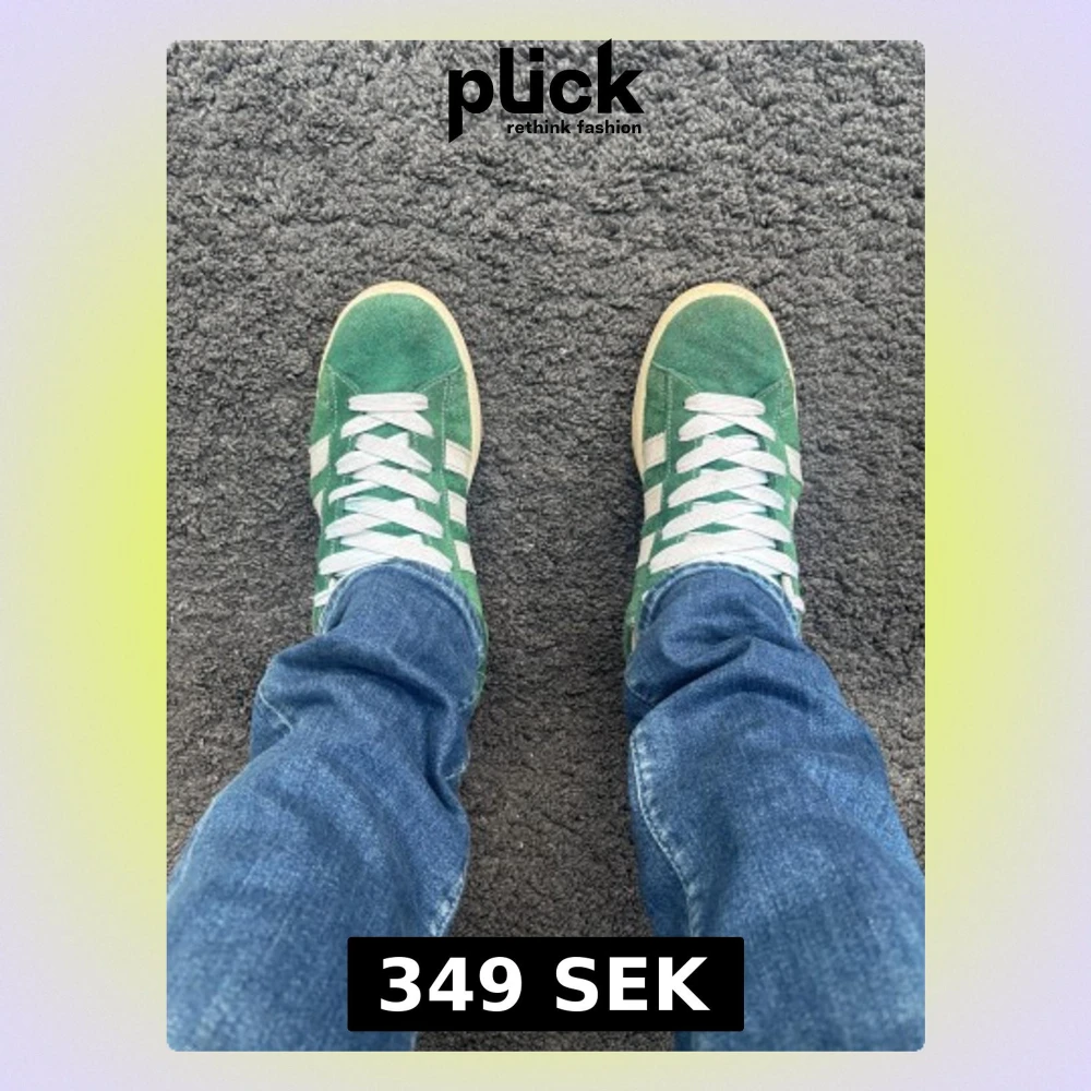 Snygga adidas campus i storlek 46 - men är lite små i storleken så passar 45 oxå. Jag har 45 och den passar bra pp mig. Perfekta skor till vardagligt bruk och riktigt sköna med mjukt material intill. Använda i ett halvår ungefär. Grymma dojor! 🎨 Färg: Gröna med vita detaljer ✅ Skick: 8/10 - liten defekt vid hälen (se bild 3) annars i riktigt bra skick. 🧵 Modell: Adidas Campus ✨Otroligt sköna & snygga ‼️ Skickas samma dag eller dagen efter köpet genomförs ‼️