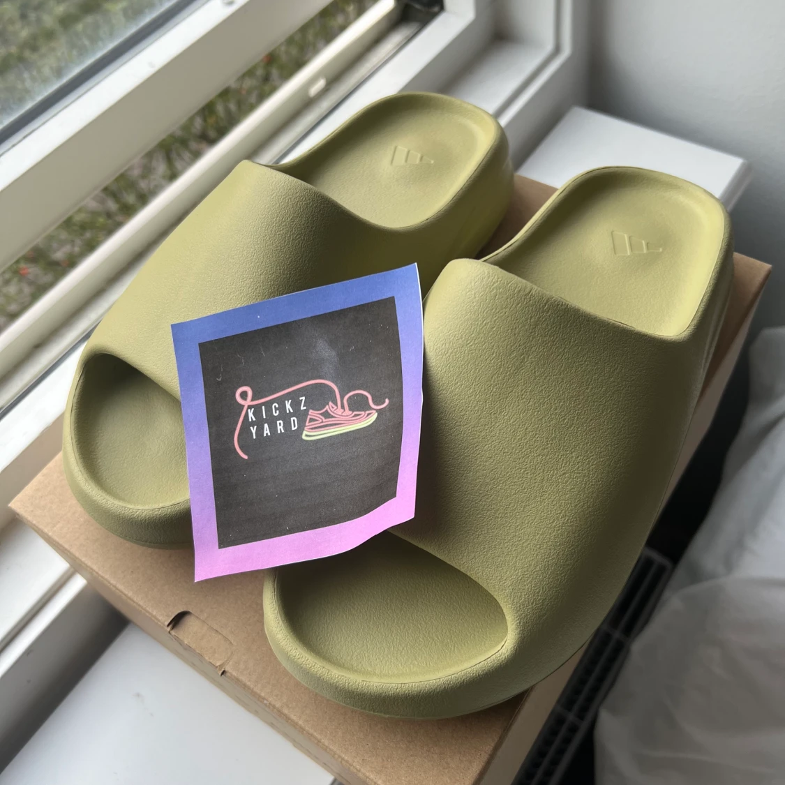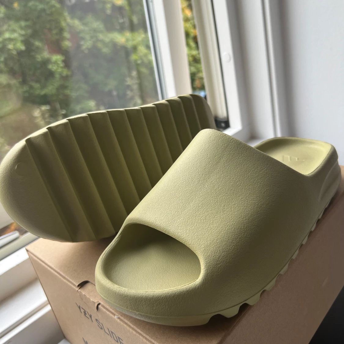 wts yeezy slide resin storlek: 44.5 Pris: 1100 helt nya och oanvända finns i göteborg/frakt kvitto och reffs finns.