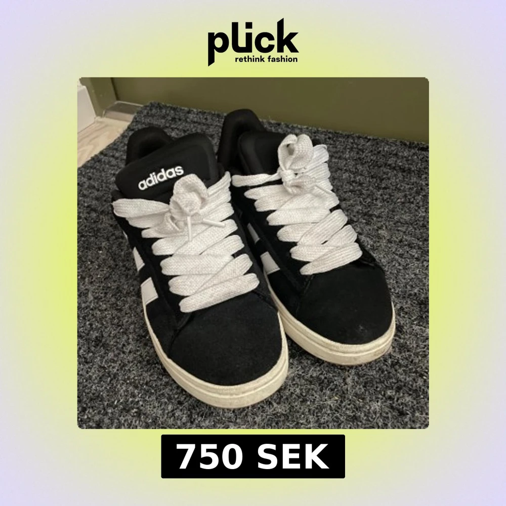 Säljer ett par klassiska Adidas sneakers i svart och vitt med de ikoniska tre ränderna på sidan. Skorna har breda vita snören, platt sula och rund tå. Ovandelen är i mocka och detaljer i syntet. Perfekta för dig som gillar en sportig och stilren look. Nya oanvända snören tillkommer svarta och vita samt original låda. Mycket fina skick. Nypris 1099kr.