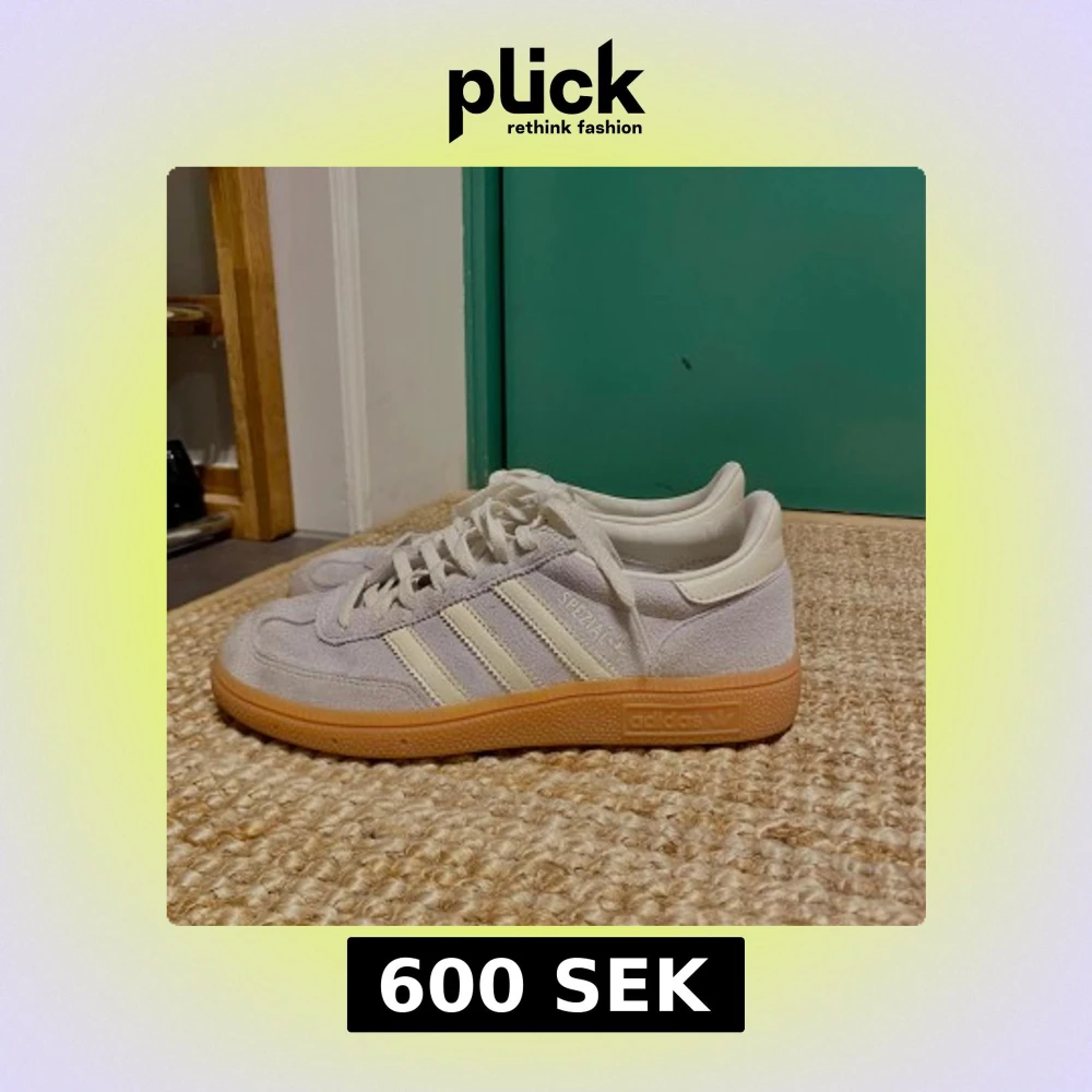 Säljer ett par Adidas Spezial sneakers i ljusgrå mocka med vita detaljer och klassiska tre ränder på sidan. Skorna har vit snörning, vit hälkappa och en snygg gummisula i brunt. Fint skick! Inte använda mycket!