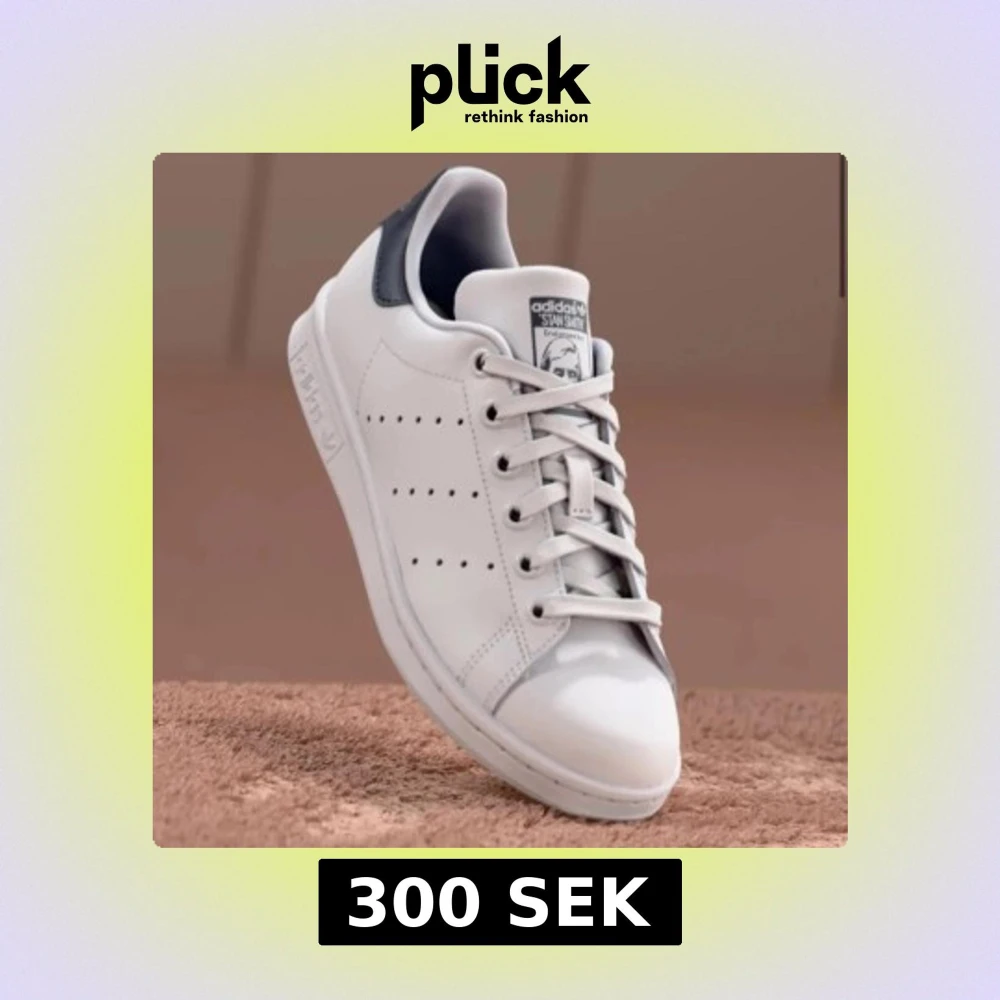 Säljer ett par adidas stan smiths med marinblå kant!! Har en liten defekt nära sulan där färgen suddats lite pch skosnören spm blivit lite mörkare med tid, men knappast något som märks🤗 Hör av dig vid funderingar eller prisförslag❣️