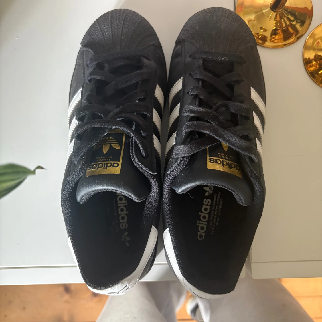 Säljer nu mina svarta Adidas Superstar, har använt dom 5 gånger så de är i bra skick. Som nya! ☺️ skriv för fler bilder 🫶🏽
