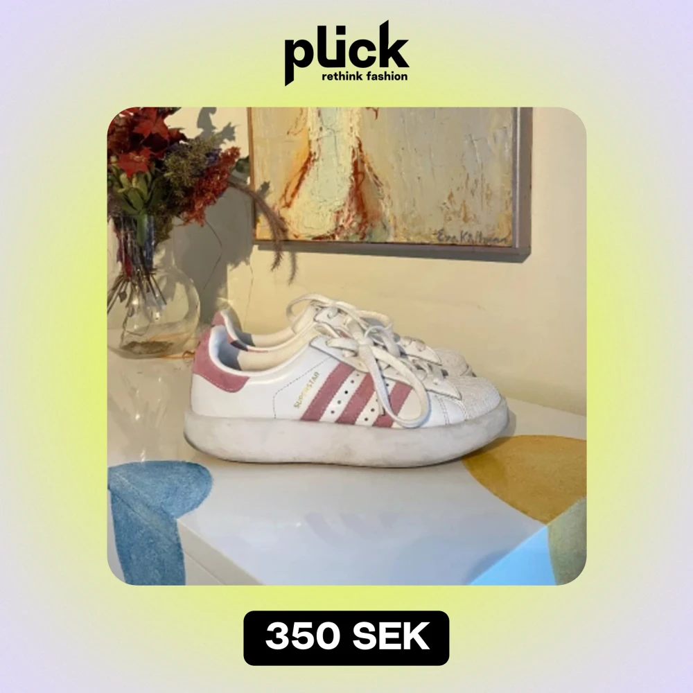 Asnajs Adidas superstars, rosa streck med hög sula đ Ă€lskar men anvĂ€nder inte. Nypris var ca 1200kr. Jag stĂ„r för frakt đŠ endast swish som betalningsmedel
