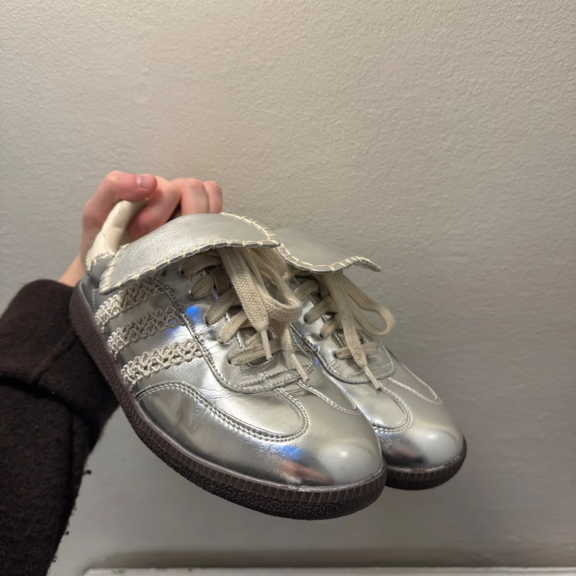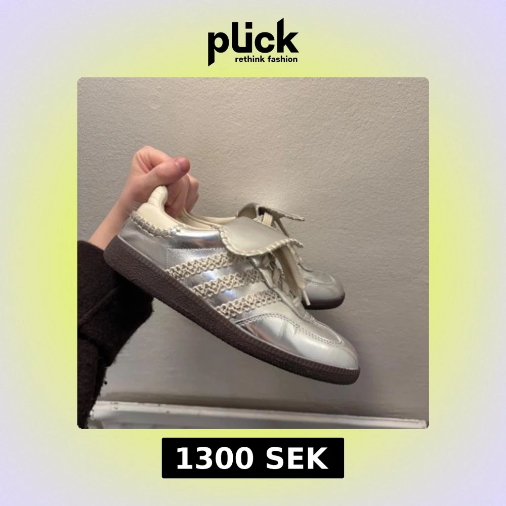 Adidas Wales bonner, silvriga skor. Storlek 38. Köpa för 2799 på Vinted (har ej kvitto) så kan ej garantera att de är äkta. Nypris 4499. Super fina och i bra skick!