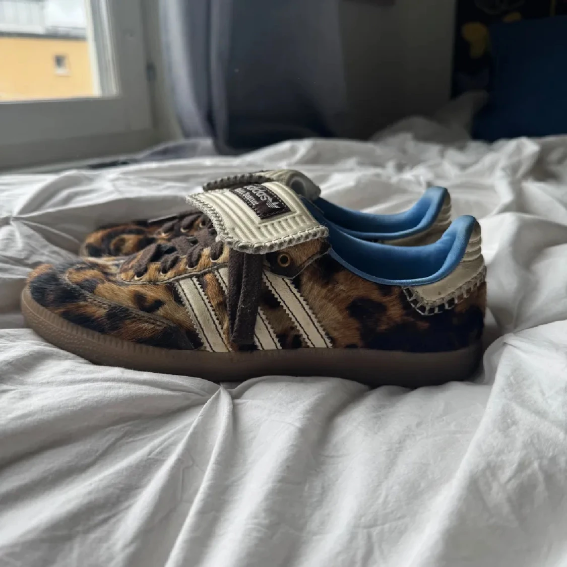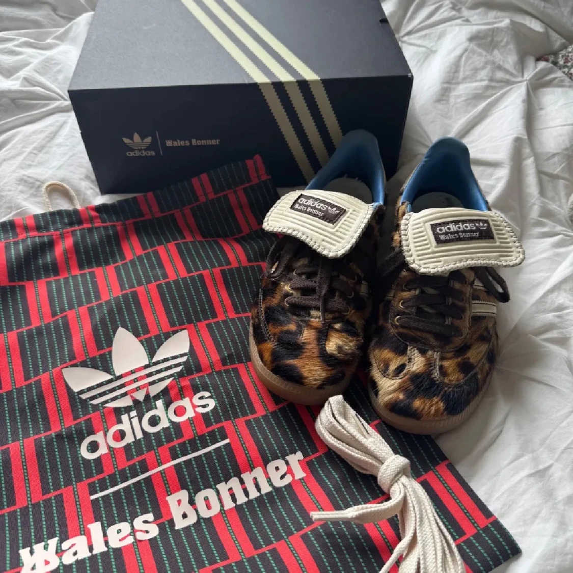 ÄKTA Slutsålda sneakers från Adidas x Wales Bonner med leopardmönster och bruna detaljer. Fint skick, inte använt alls mycket. Storlek 38 & 2/3. Köpta på sneakersnstuff i Stockholm dagen då de släpptes.