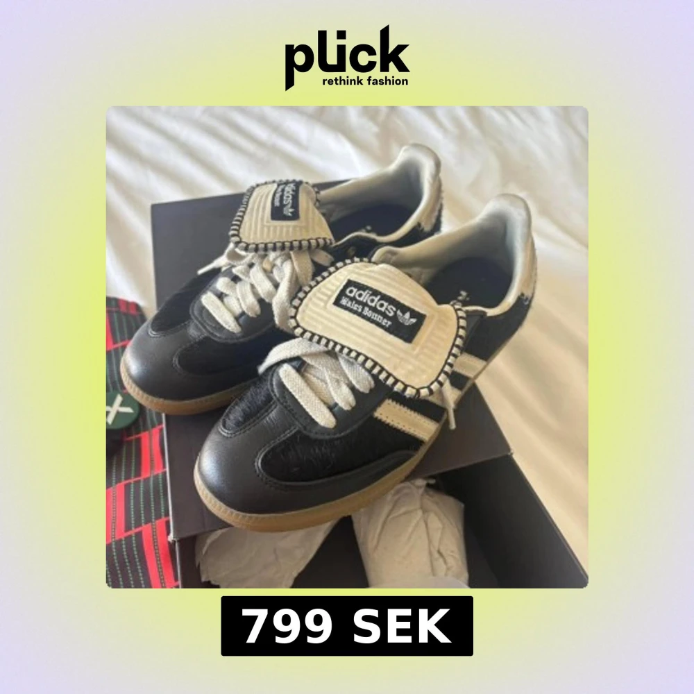 Unika Adidas Wales Bonner Samba sneakers i svart och beige med klassiska ränder och grov snörning. Skorna har en retro look med detaljerad tunga och gummisula. Materialmix av skinn och syntet, perfekt för dig som gillar limited edition och cool design.